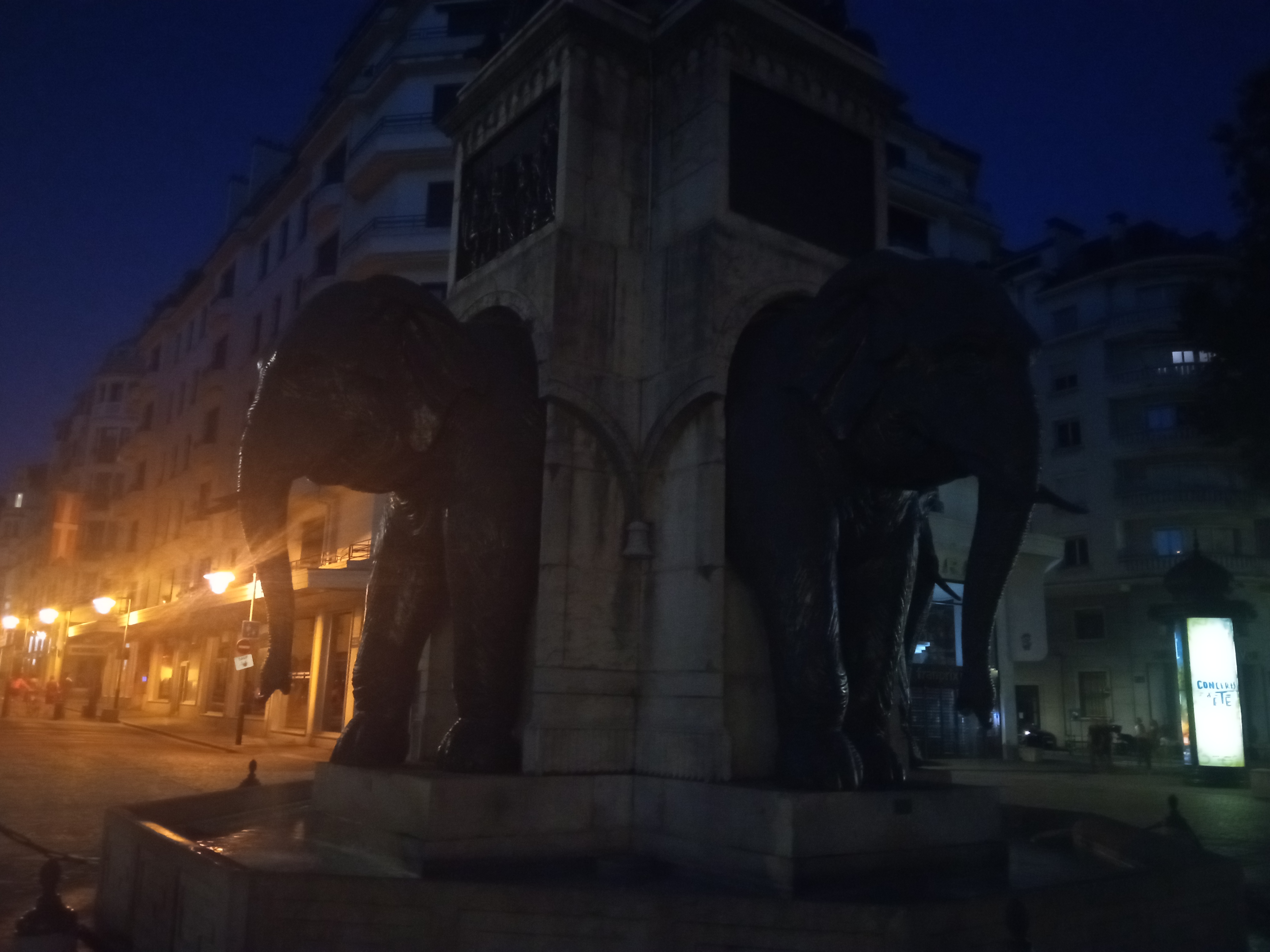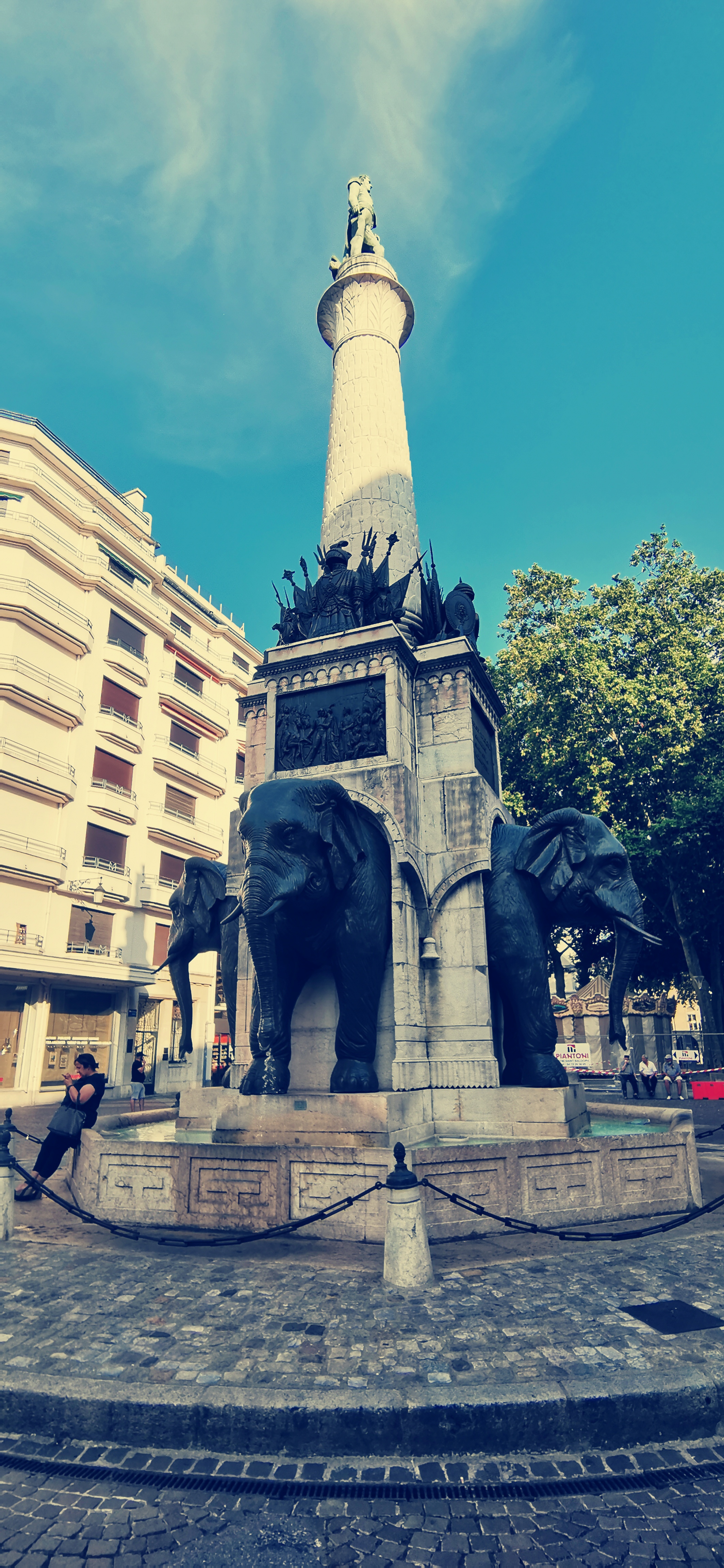 Savez-vous qu'il n'y a que 4 éléphants sur cette fontaine ? Il y a des chevaux et un animal très bizarre perché au dessus...