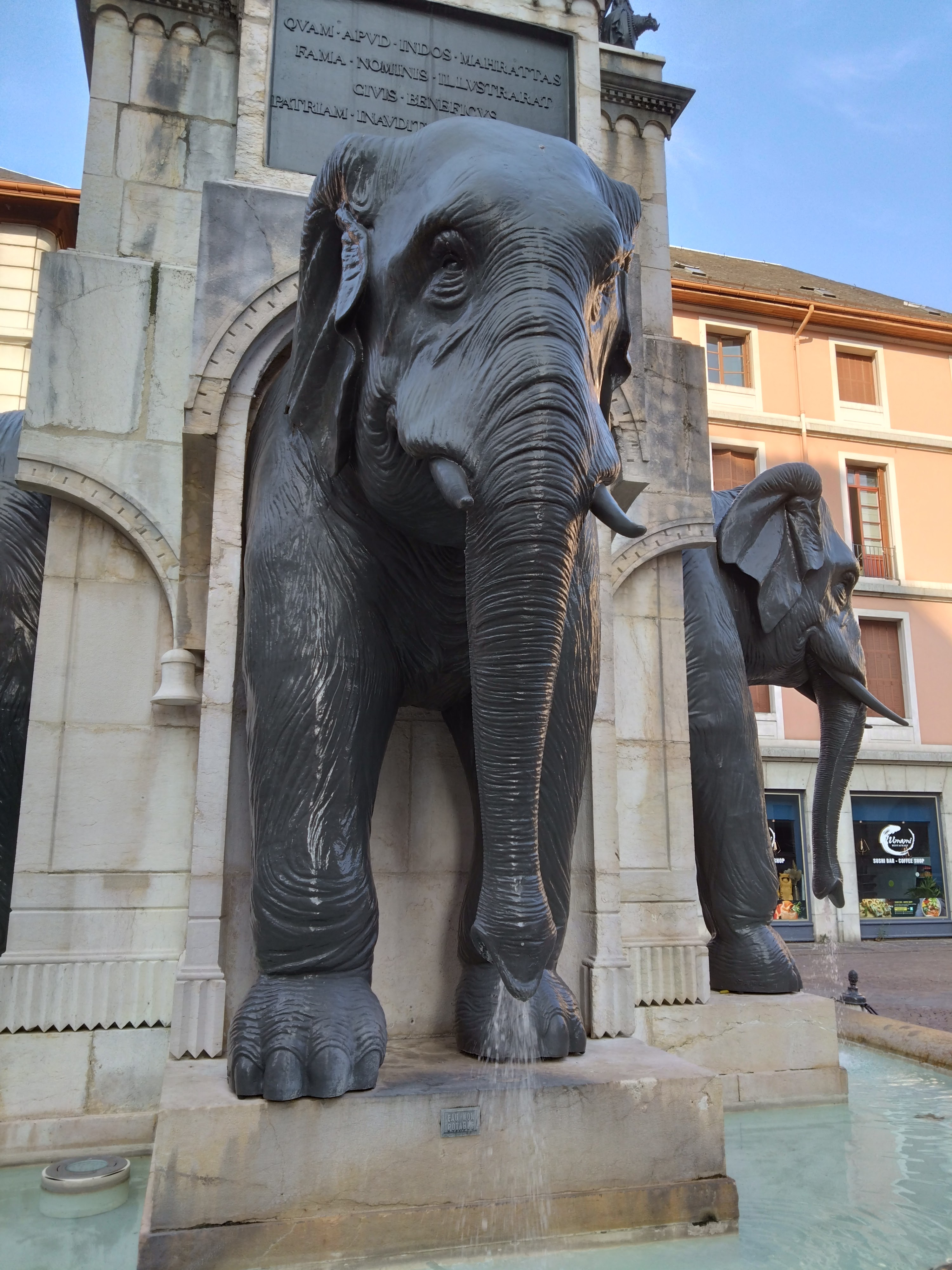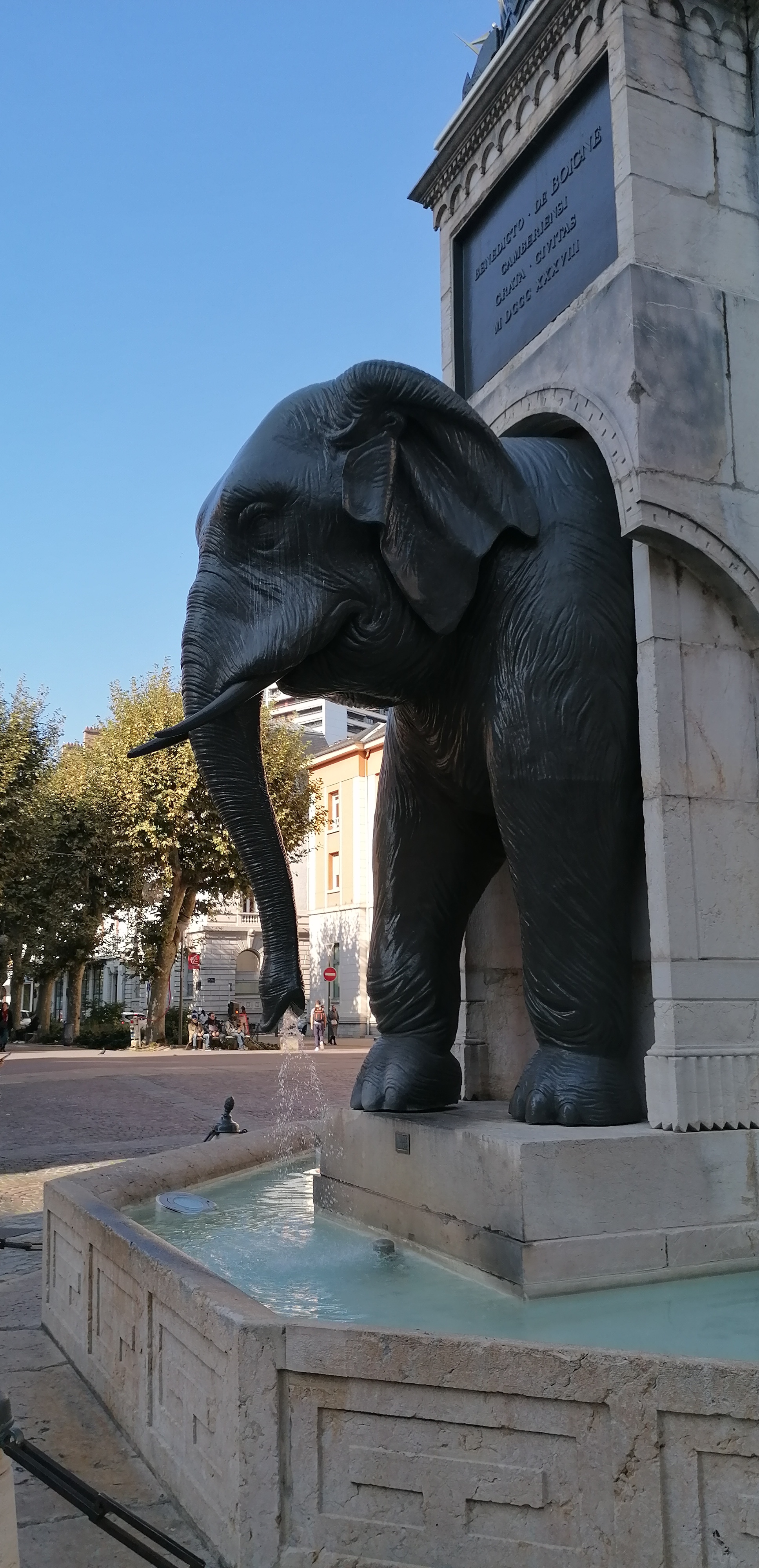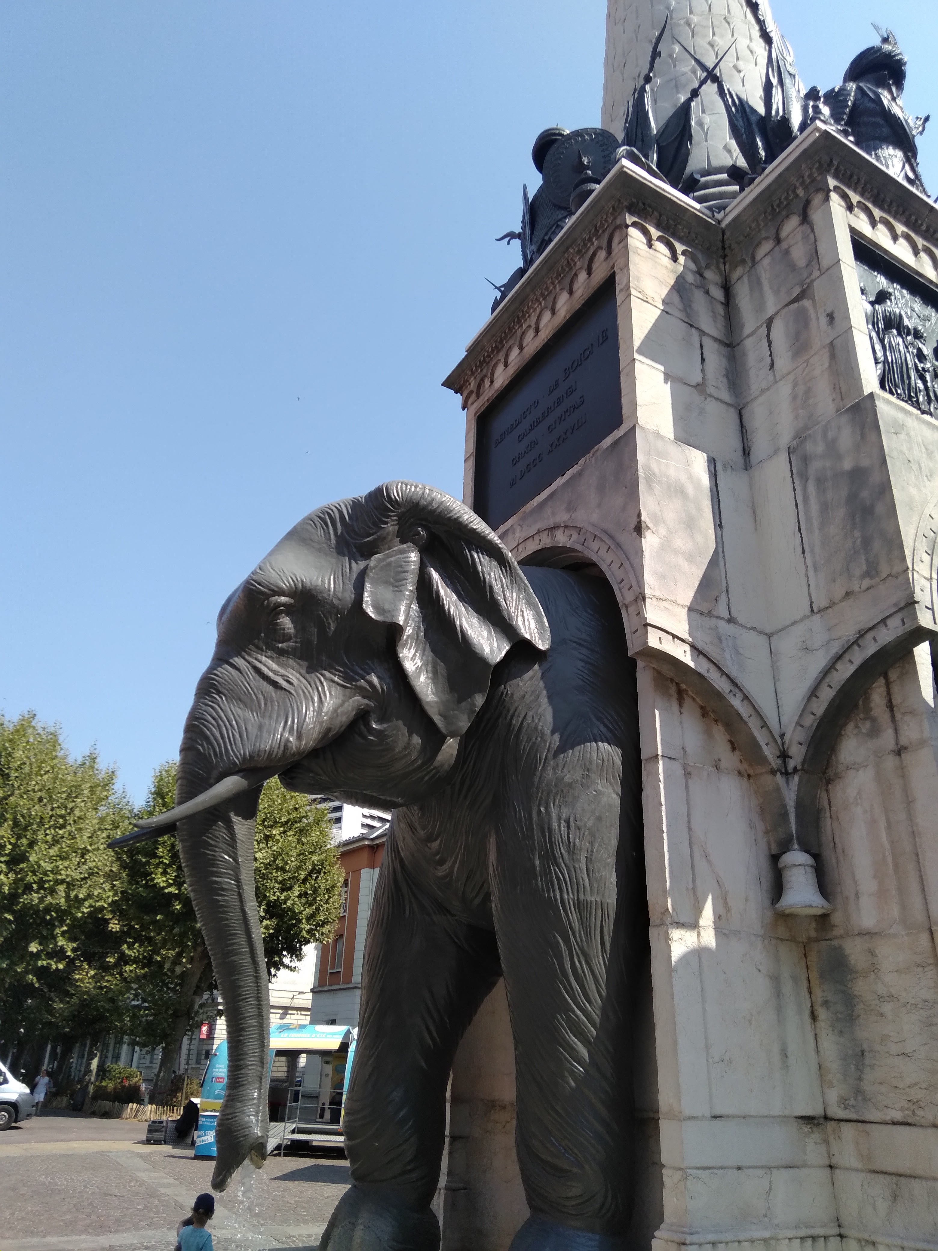 Sacré fontaine, immanquable à Chambéry ! Cette fontaine à une histoire, j'ai mis un photo expliquant cette œuvre ! Date de 1838 ! Les éléphants sont bien faits, eau non potable ! Plein de détails sur cette œuvre à regarder !