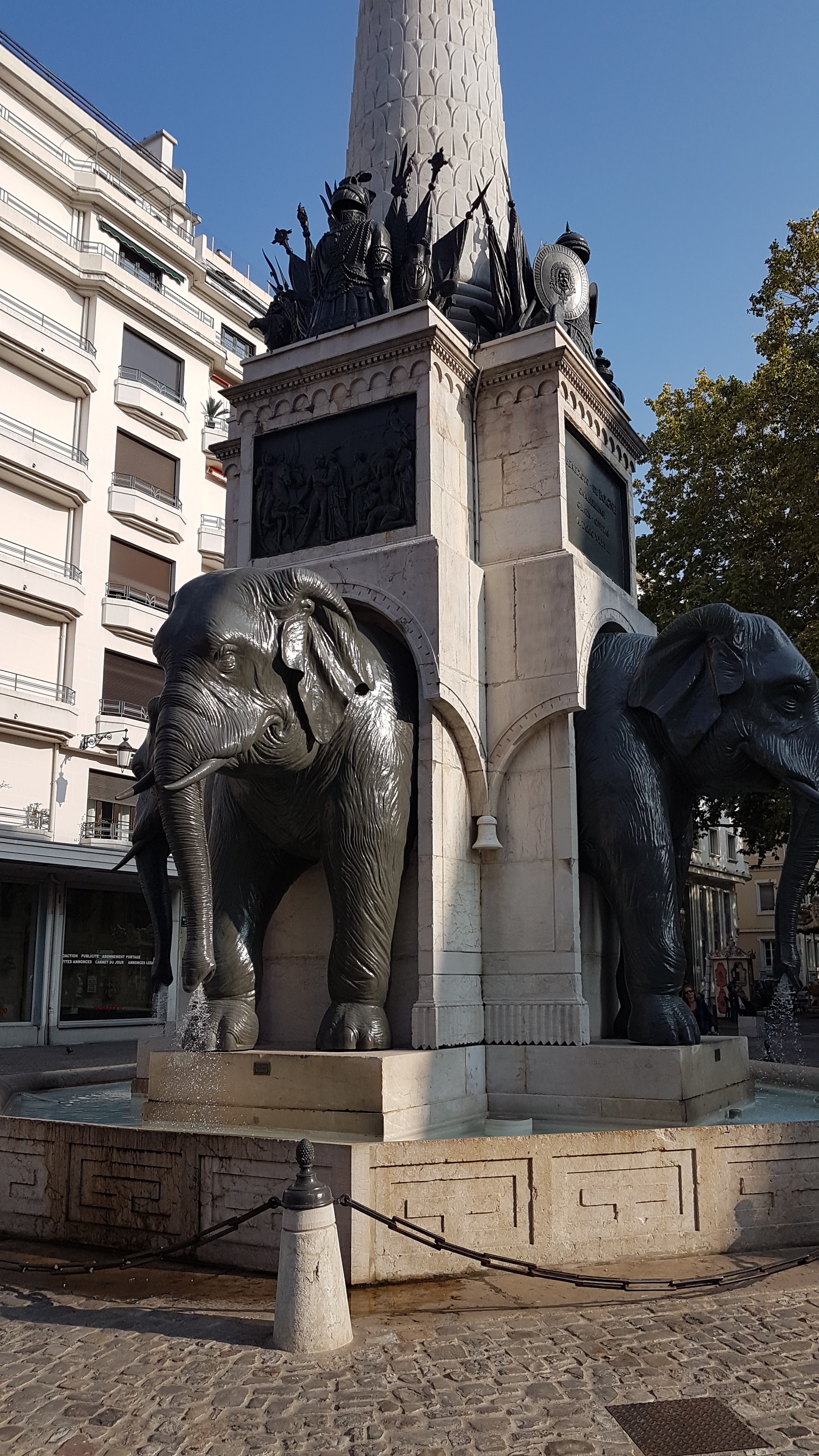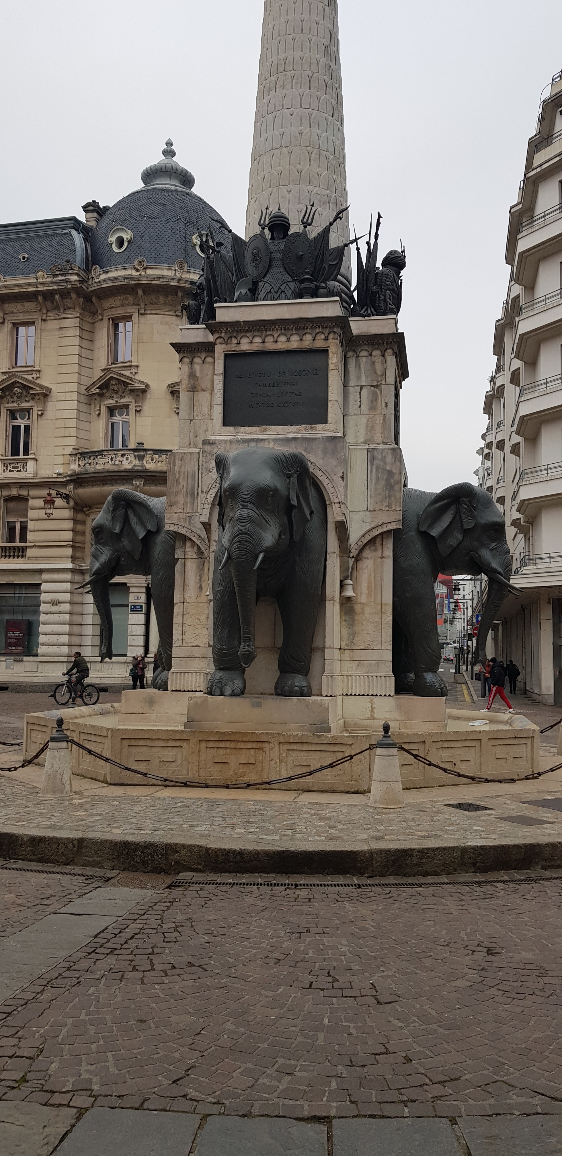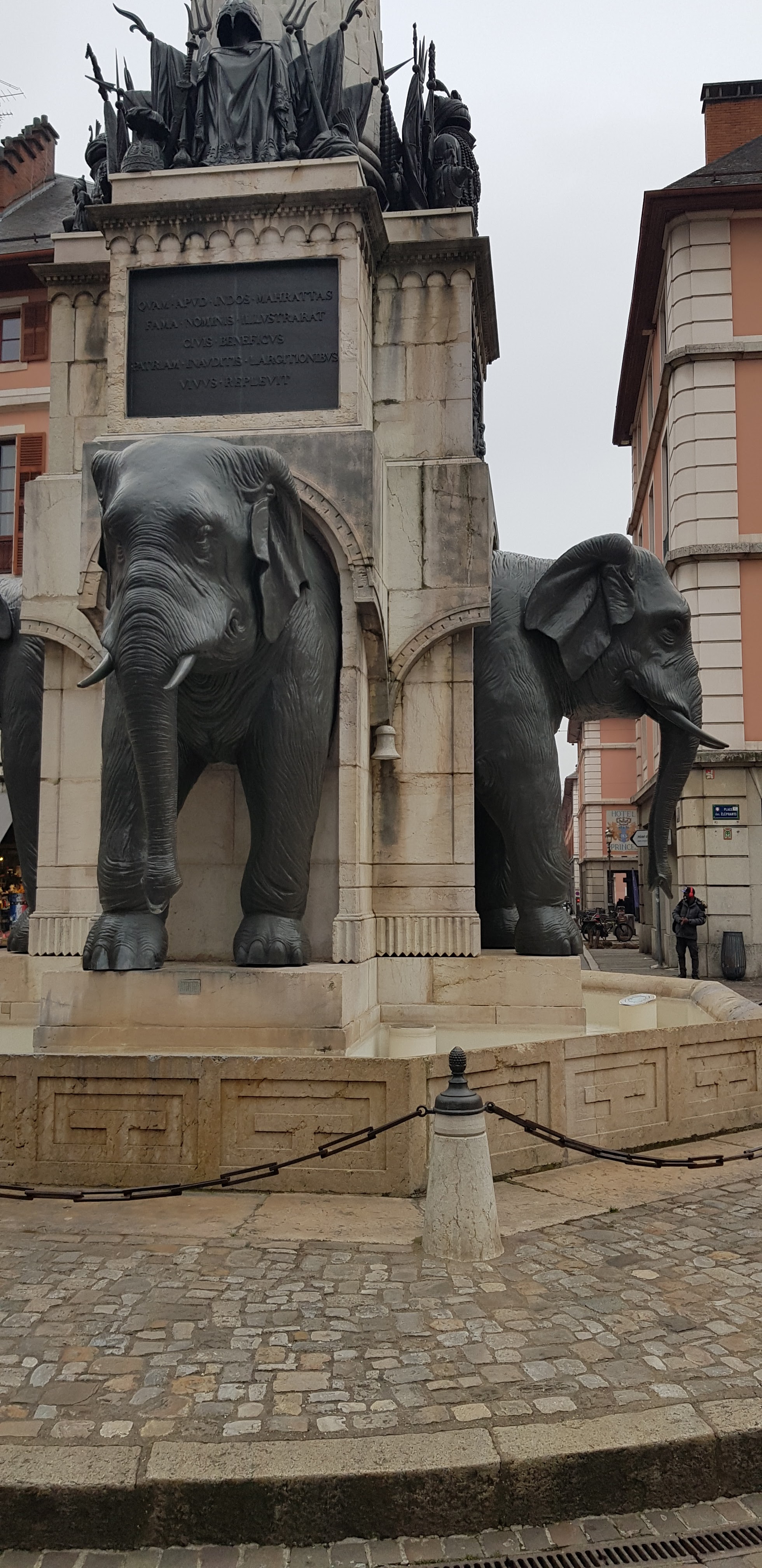 Sacré fontaine, immanquable à Chambéry ! Cette fontaine à une histoire, j'ai mis un photo expliquant cette œuvre ! Date de 1838 ! Les éléphants sont bien faits, eau non potable ! Plein de détails sur cette œuvre à regarder !
