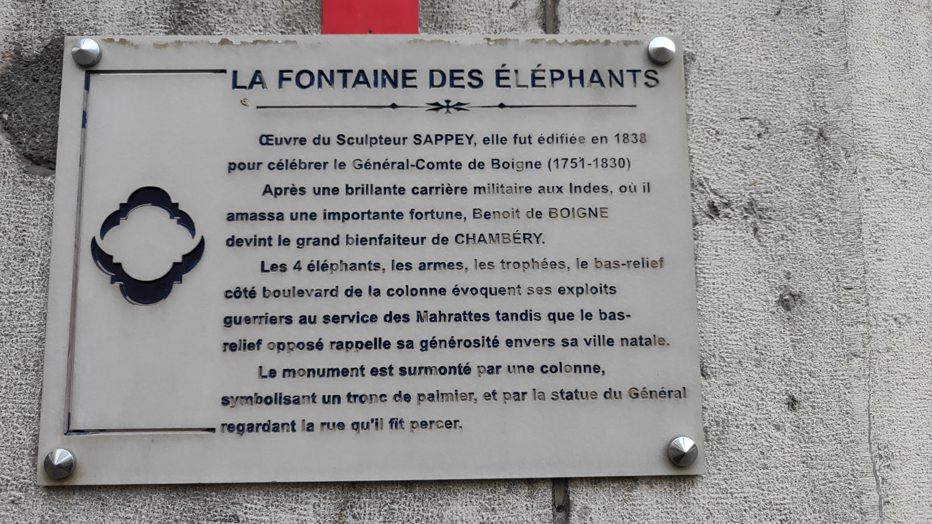 L'emblème de la ville de Chambéry portant fièrement son bienfaiteur.