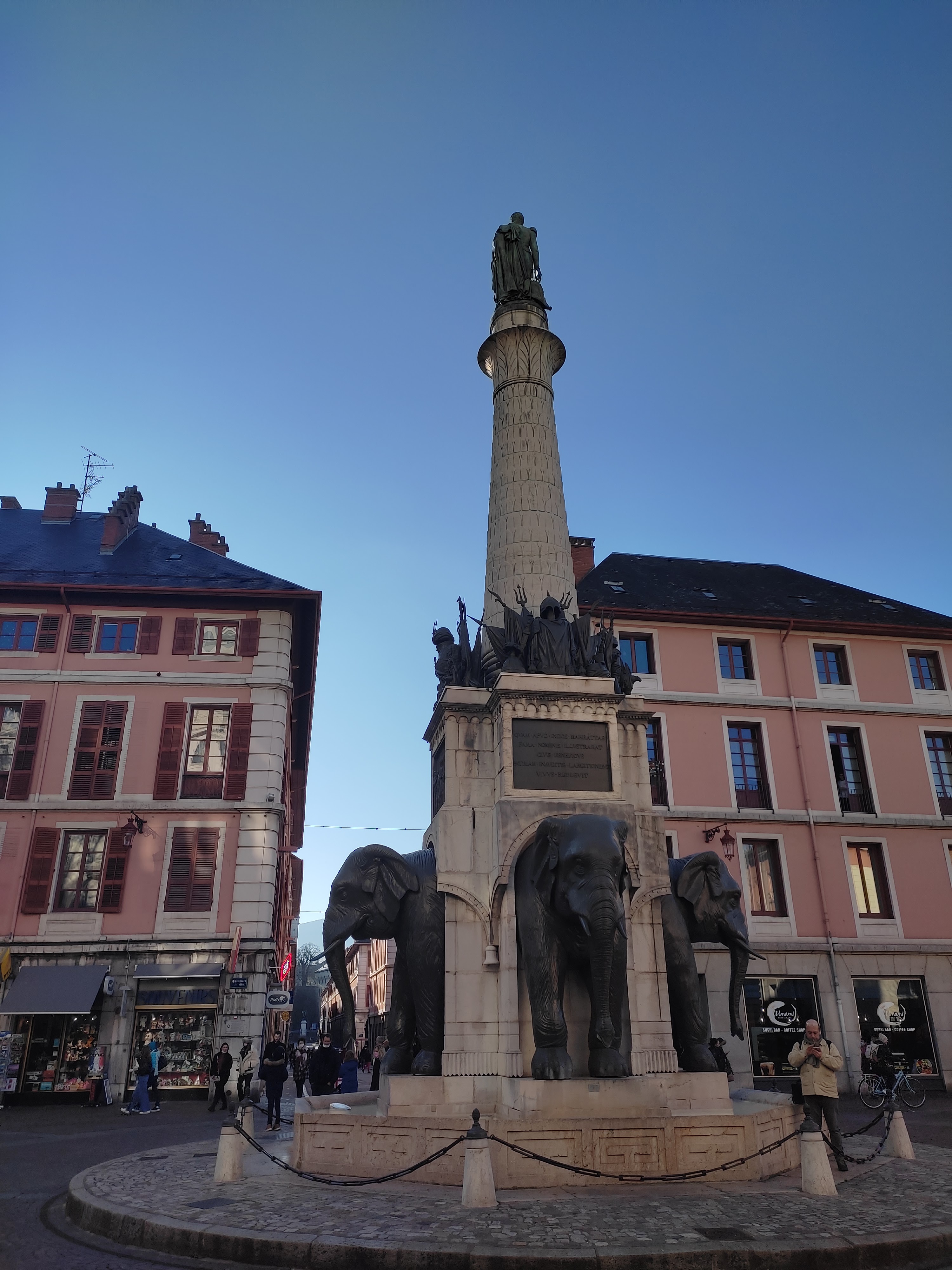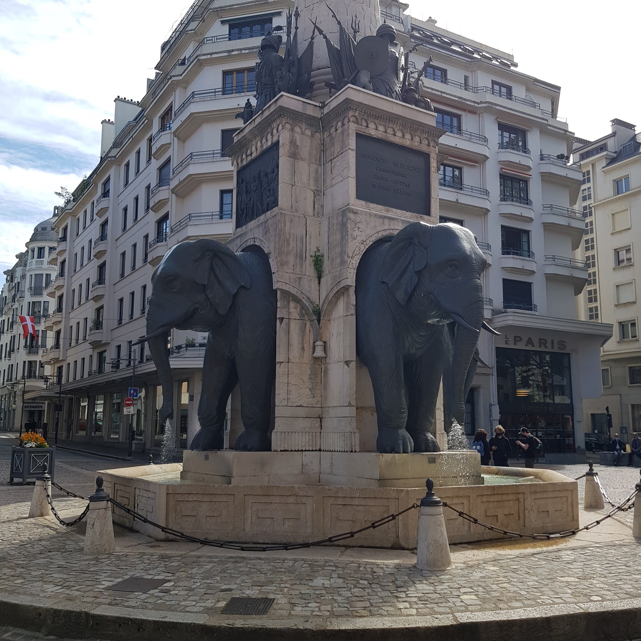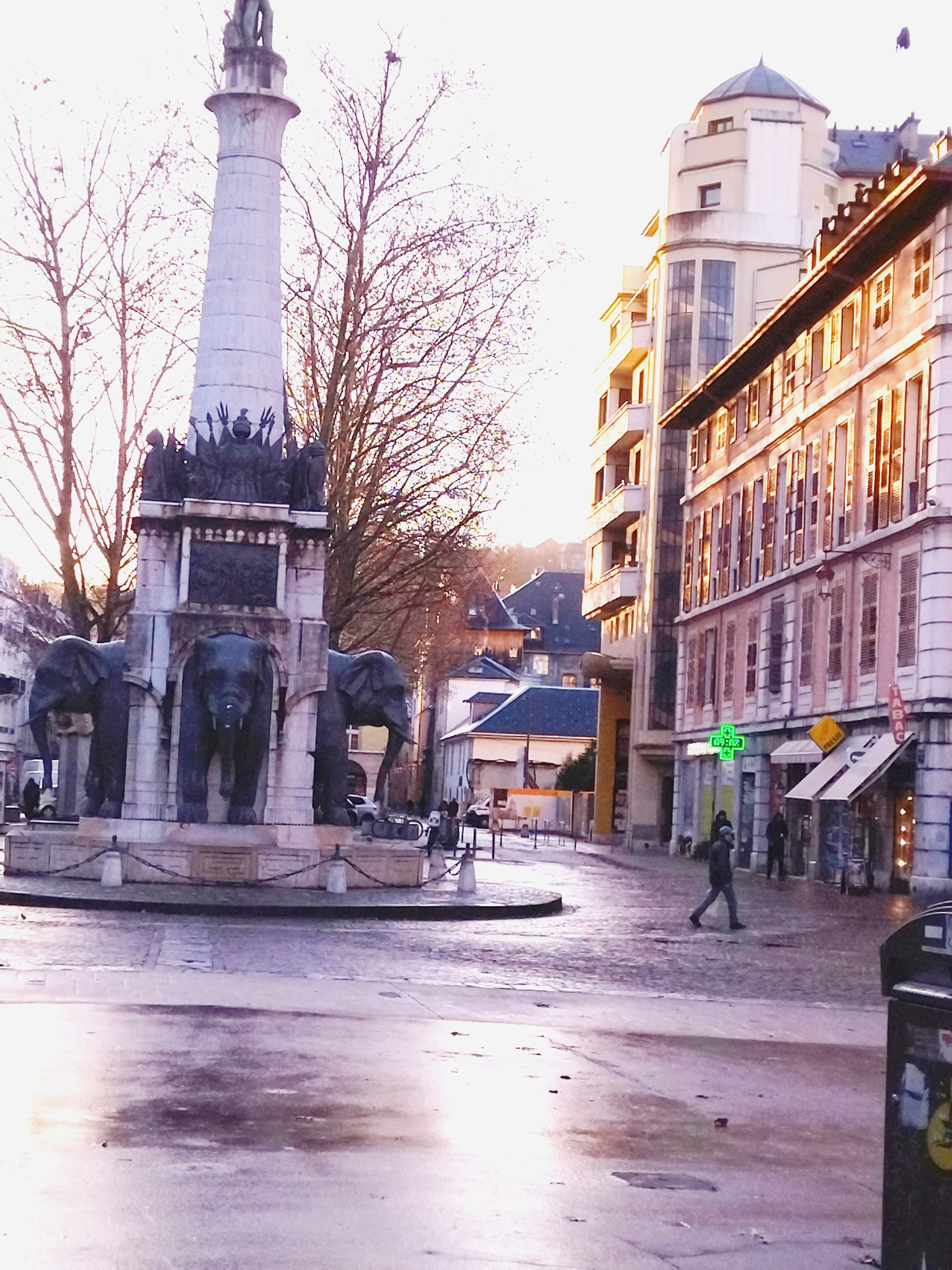 La fontaine des éléphants est un des lieux incontournables de Chambéry. Par contre le quartier n'est pas terrible du tout et c'est dommage.