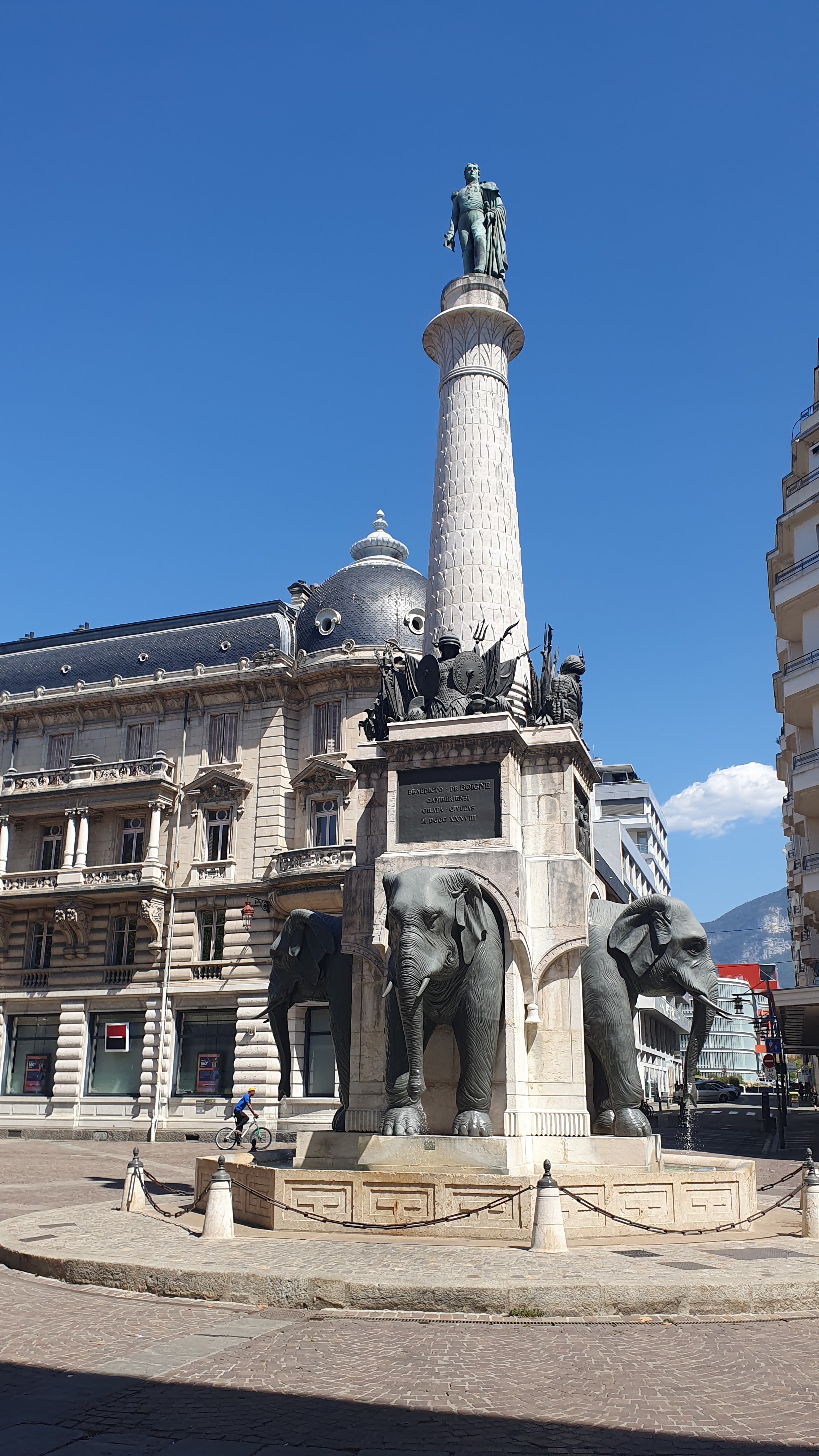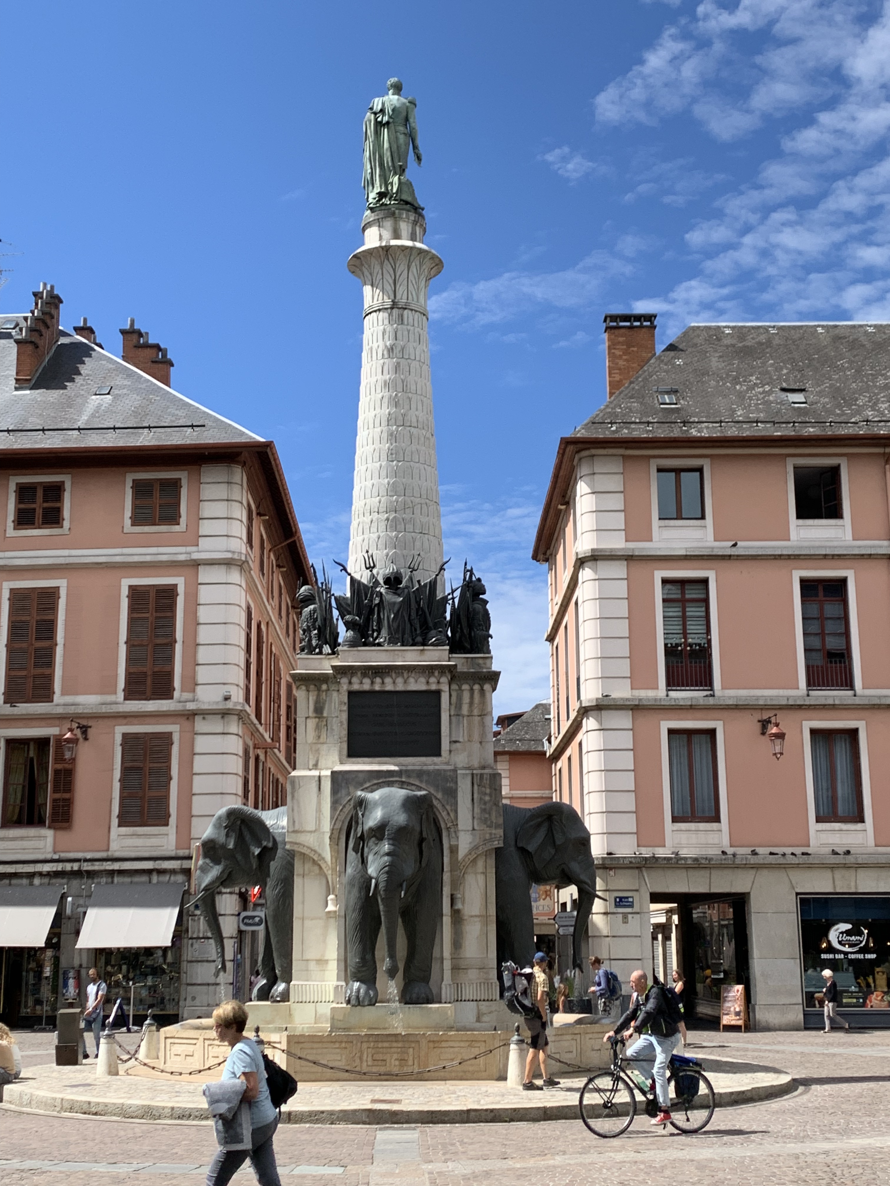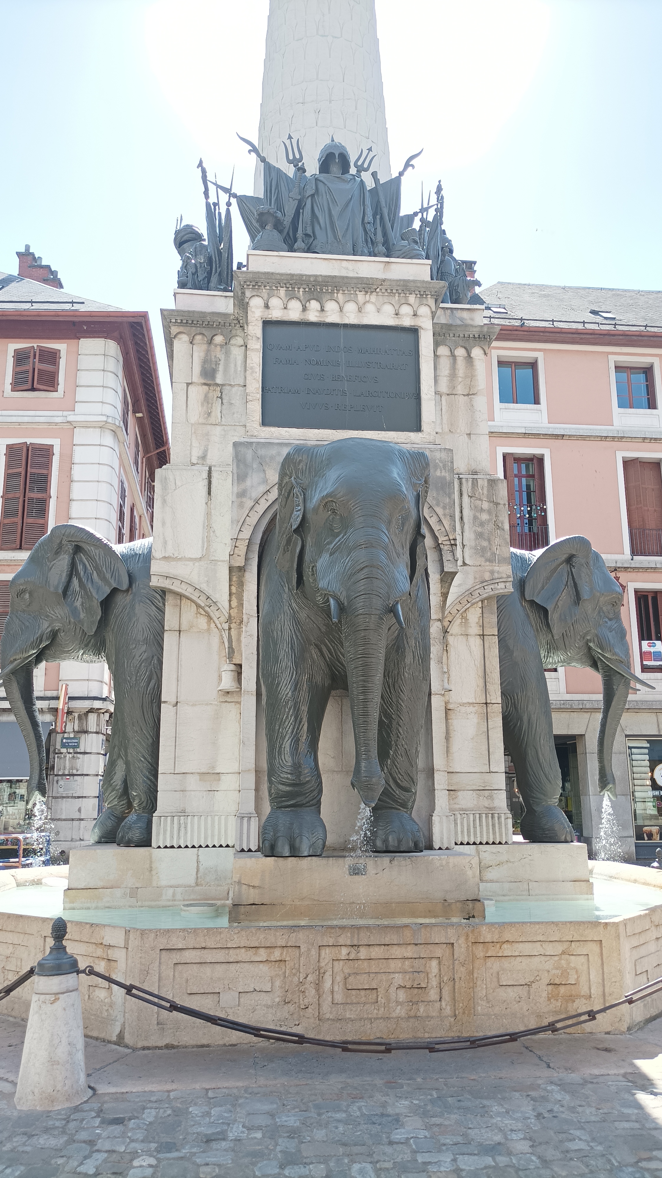Belle et grande fontaine. Très photogénique. Bien entretenue. Au sommet une statue de Boigne en l'honneur de qui elle a été érigée. Un texte explicatif n'aurait pas été de trop pour comprendre le pourquoi du comment de la présence de ces éléphants en Savoie.