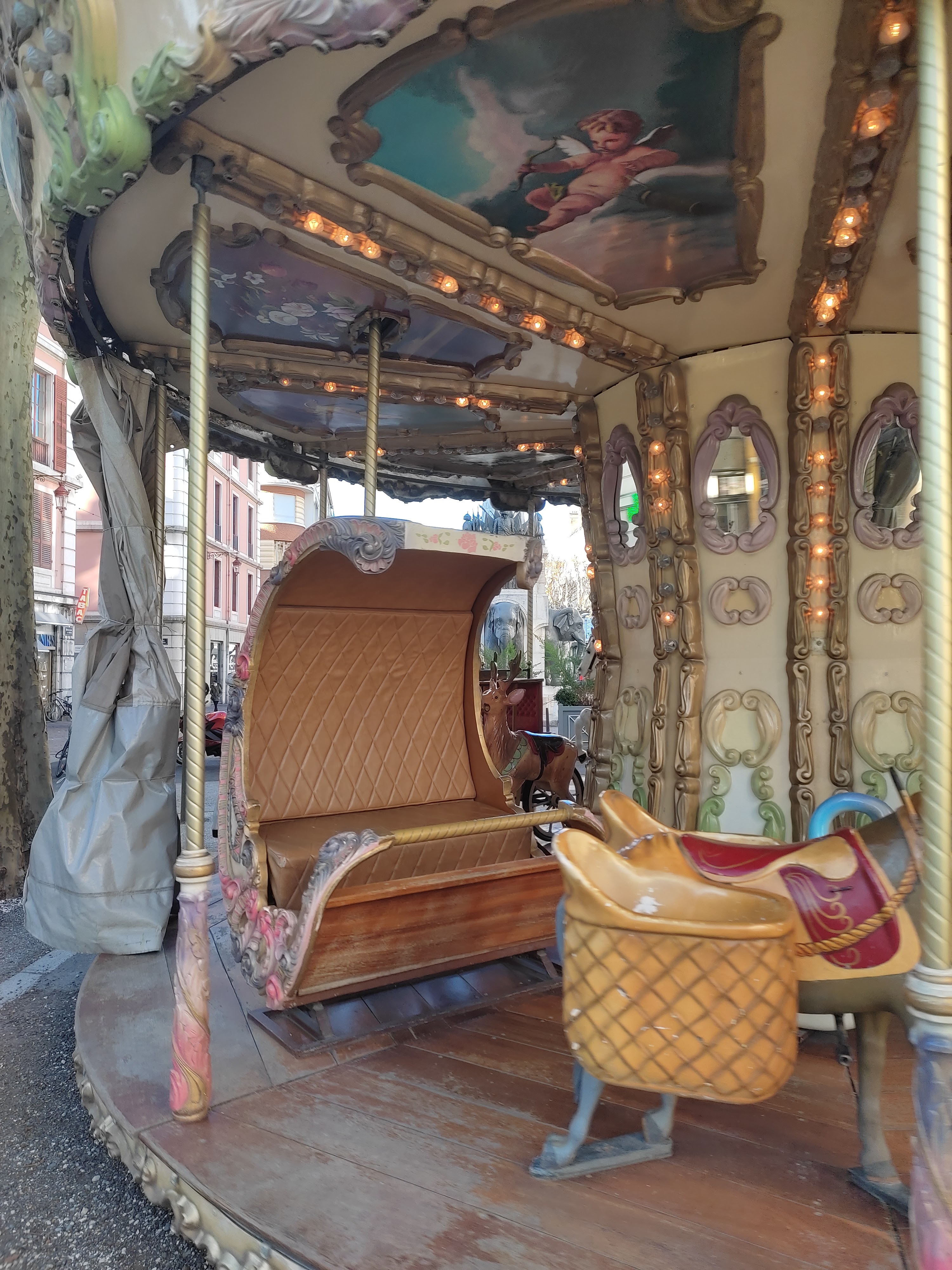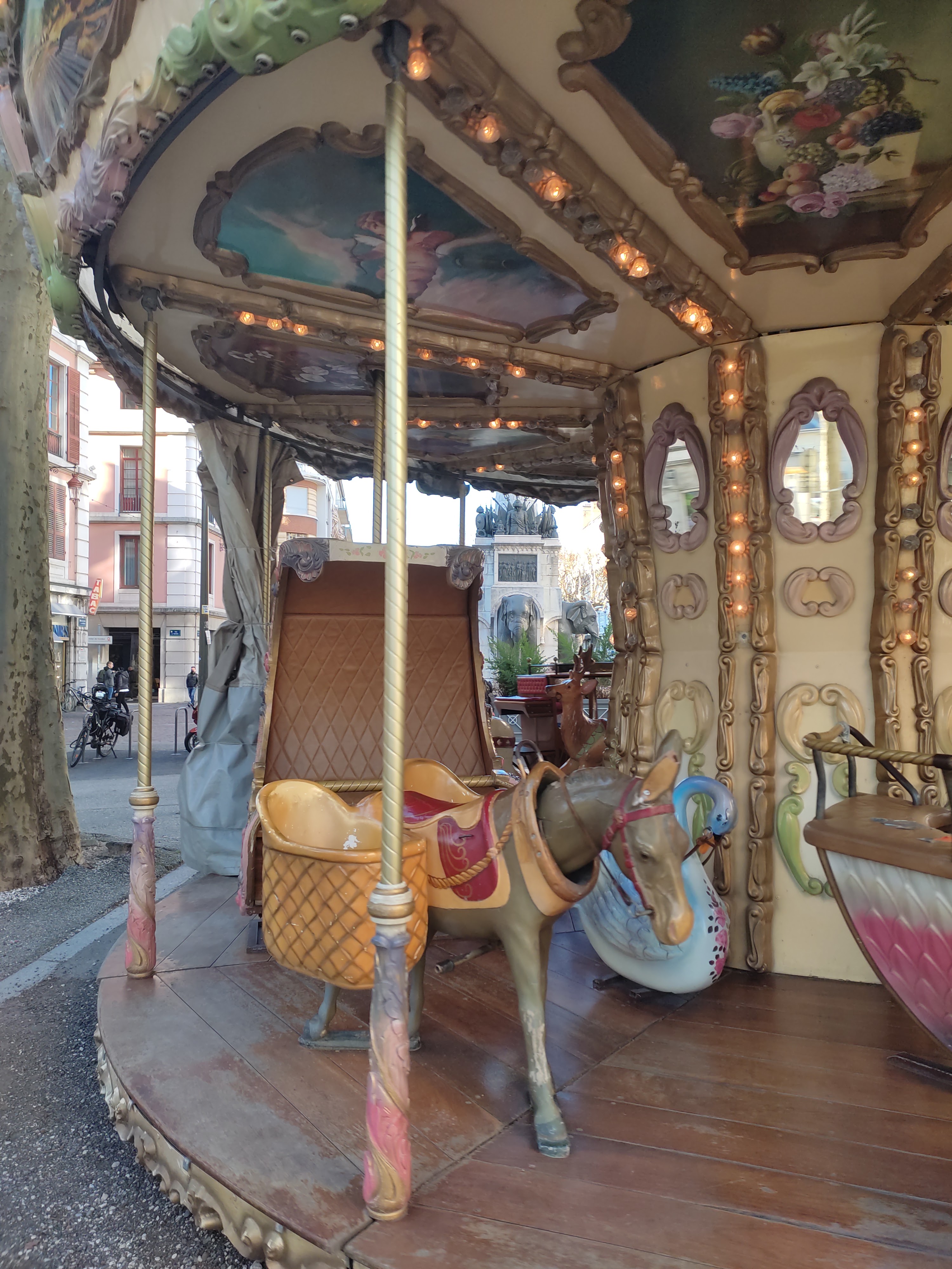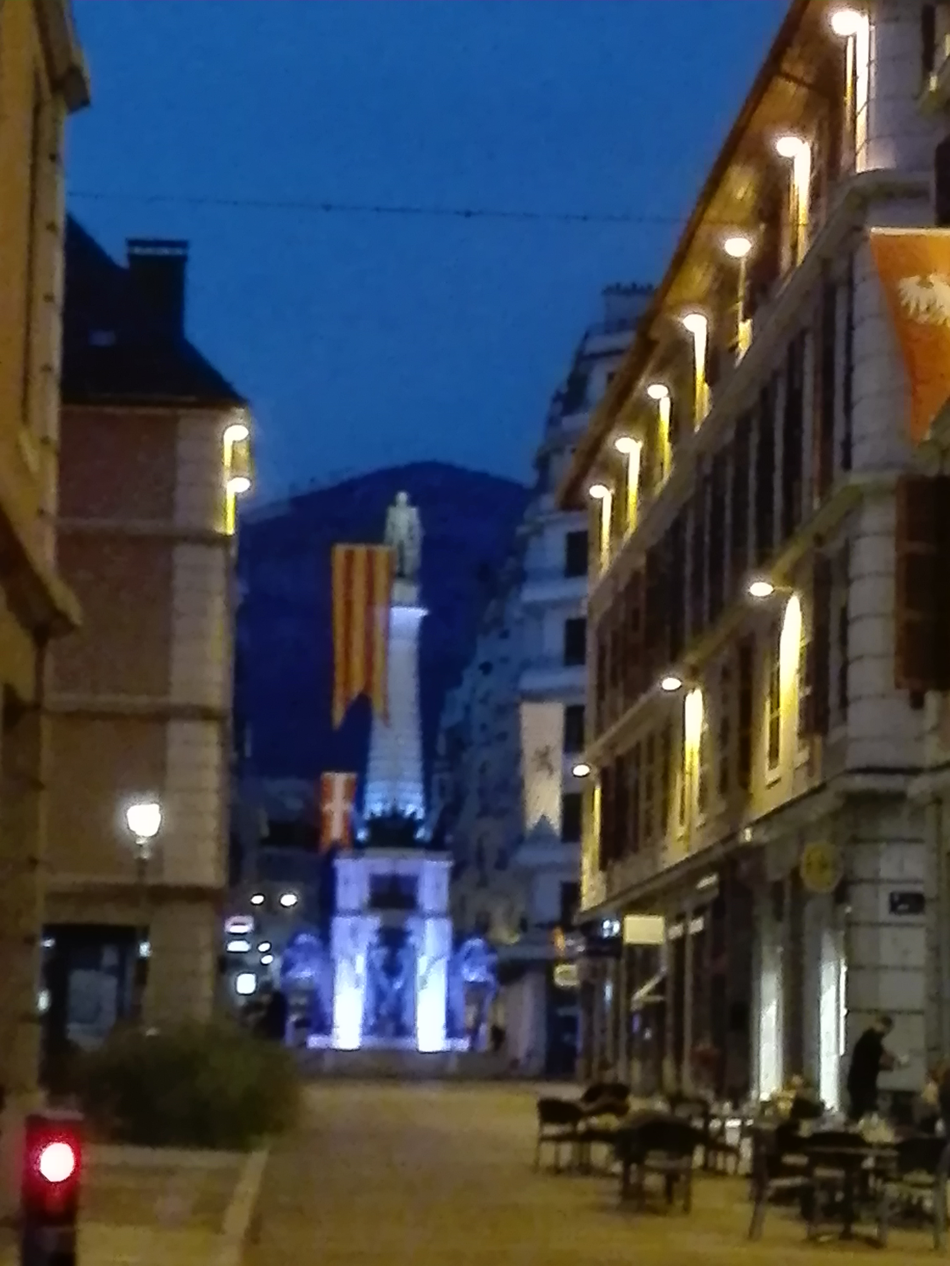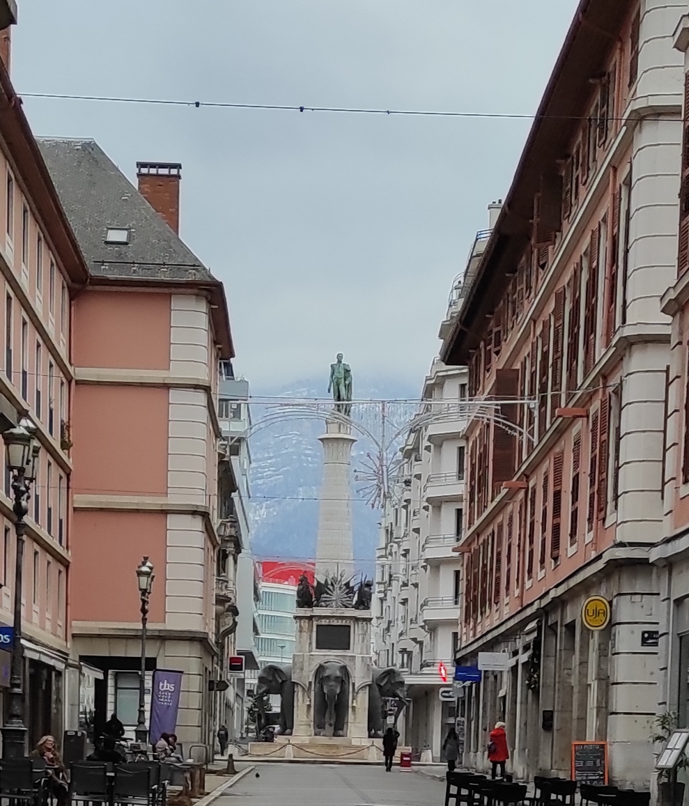 Place mythique de Chambéry. Localement connue sous le nom des « 4 sans Q ». Aussi intact que dans mes souvenirs de jeunesse. En cette période de fête la ville s’est parée de belles illuminations il y a également un marché de Noël. Dommage qu’il n’y ait pas de neige