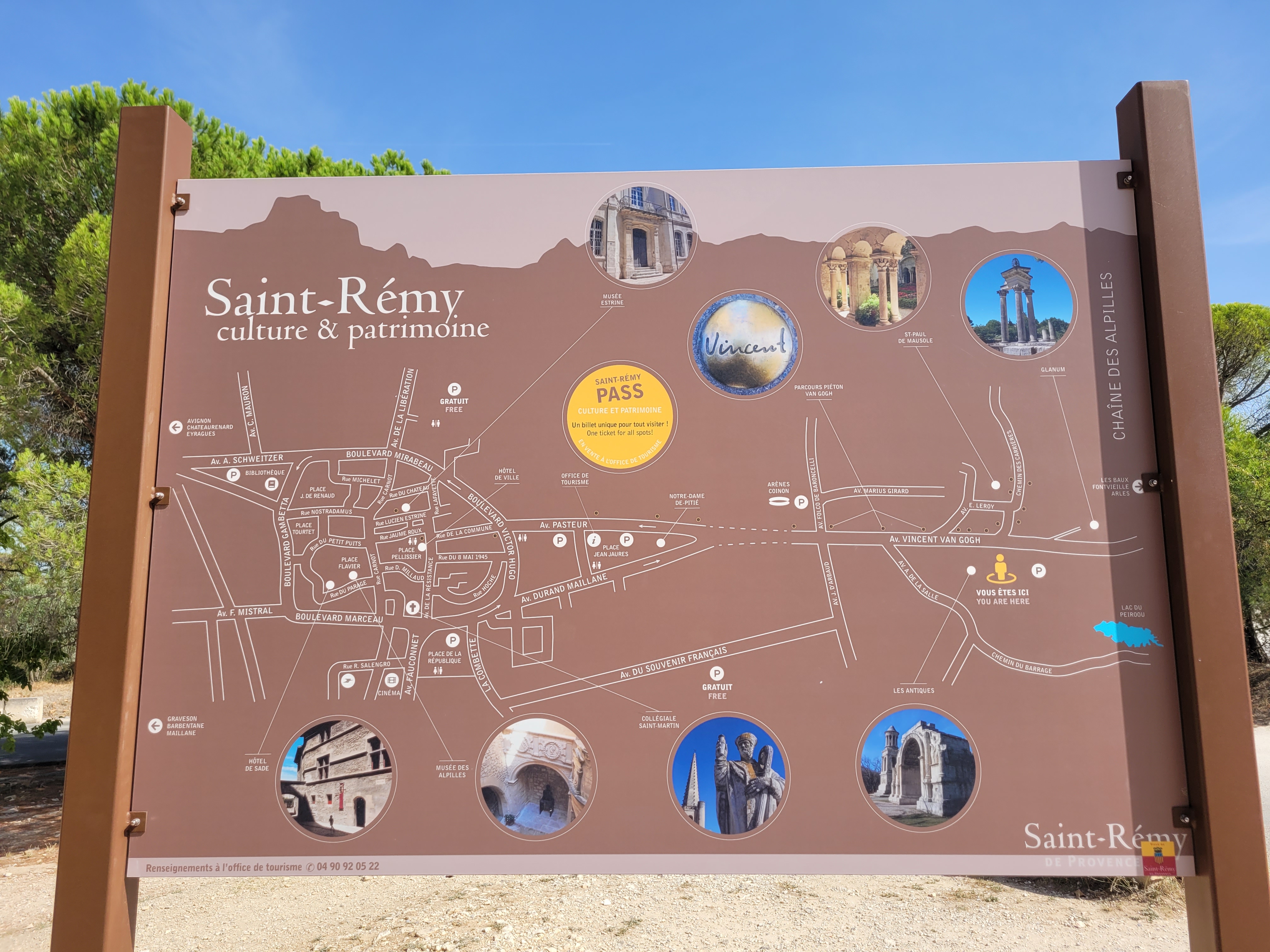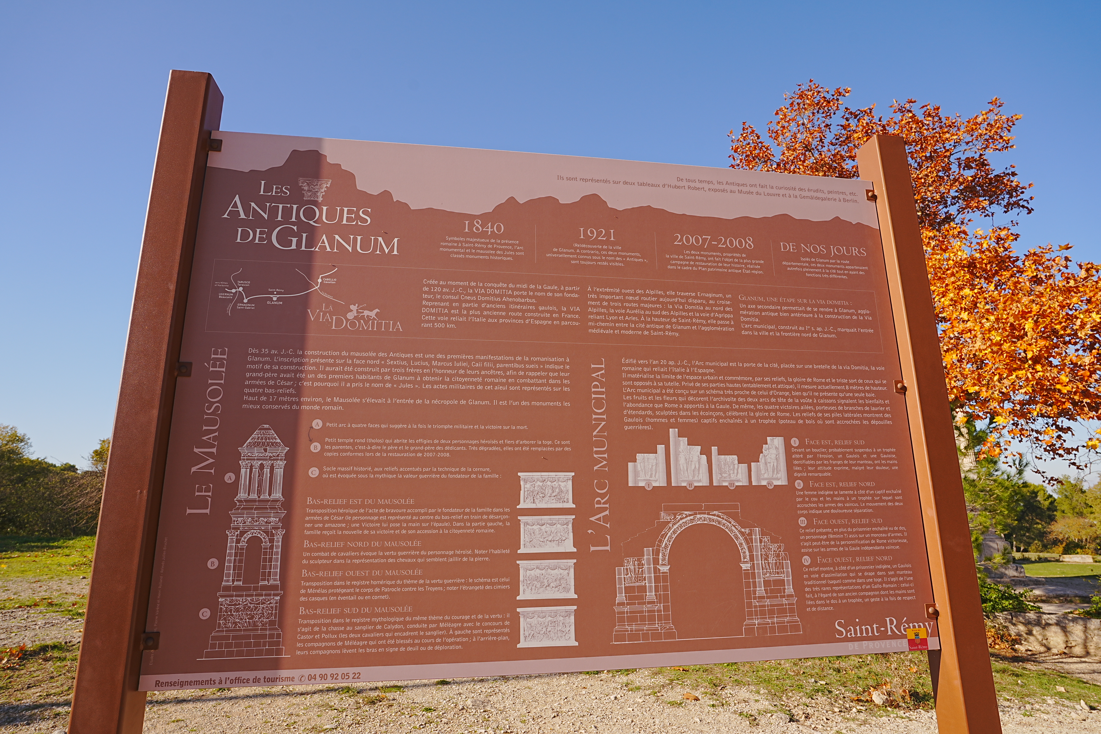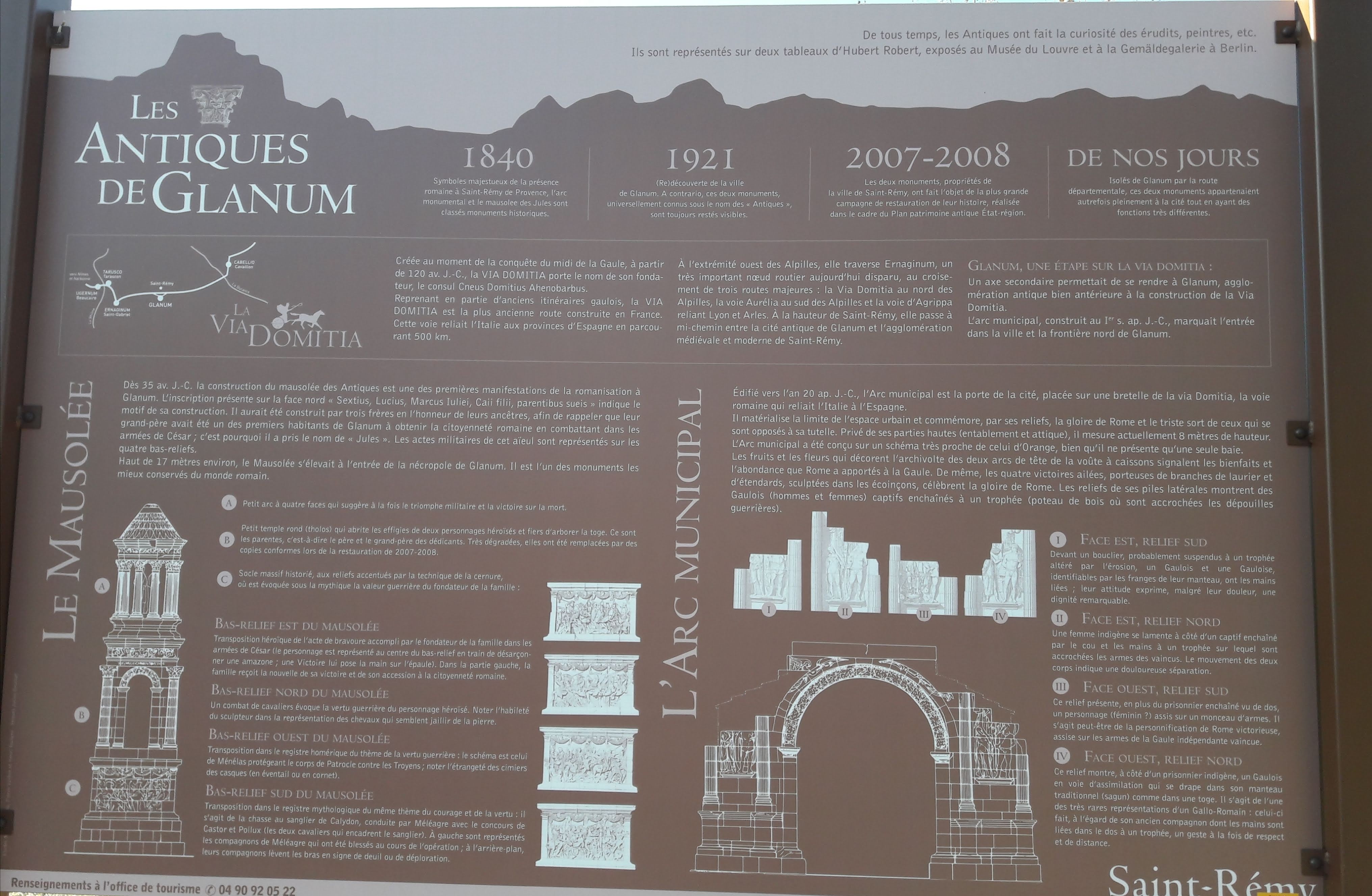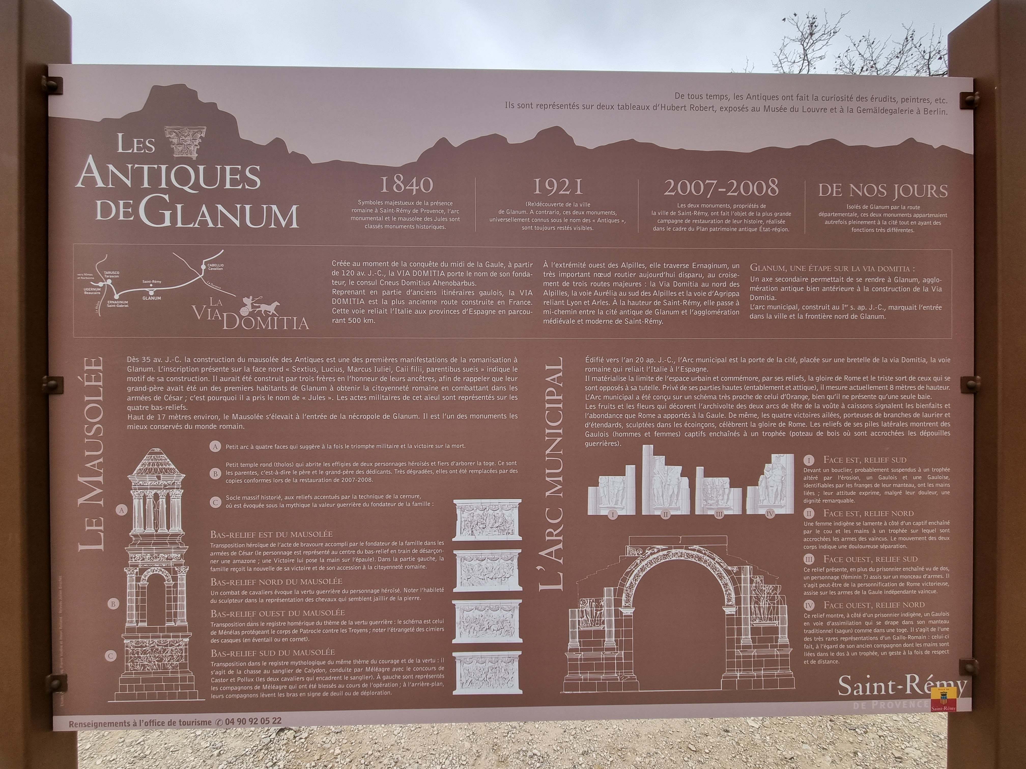 Panneau très explicatif des Antiques à St Remy de Provence ,jolis mausolée et arc de triomphe. Déambulation très agréable dans ce lieu hors du temps.