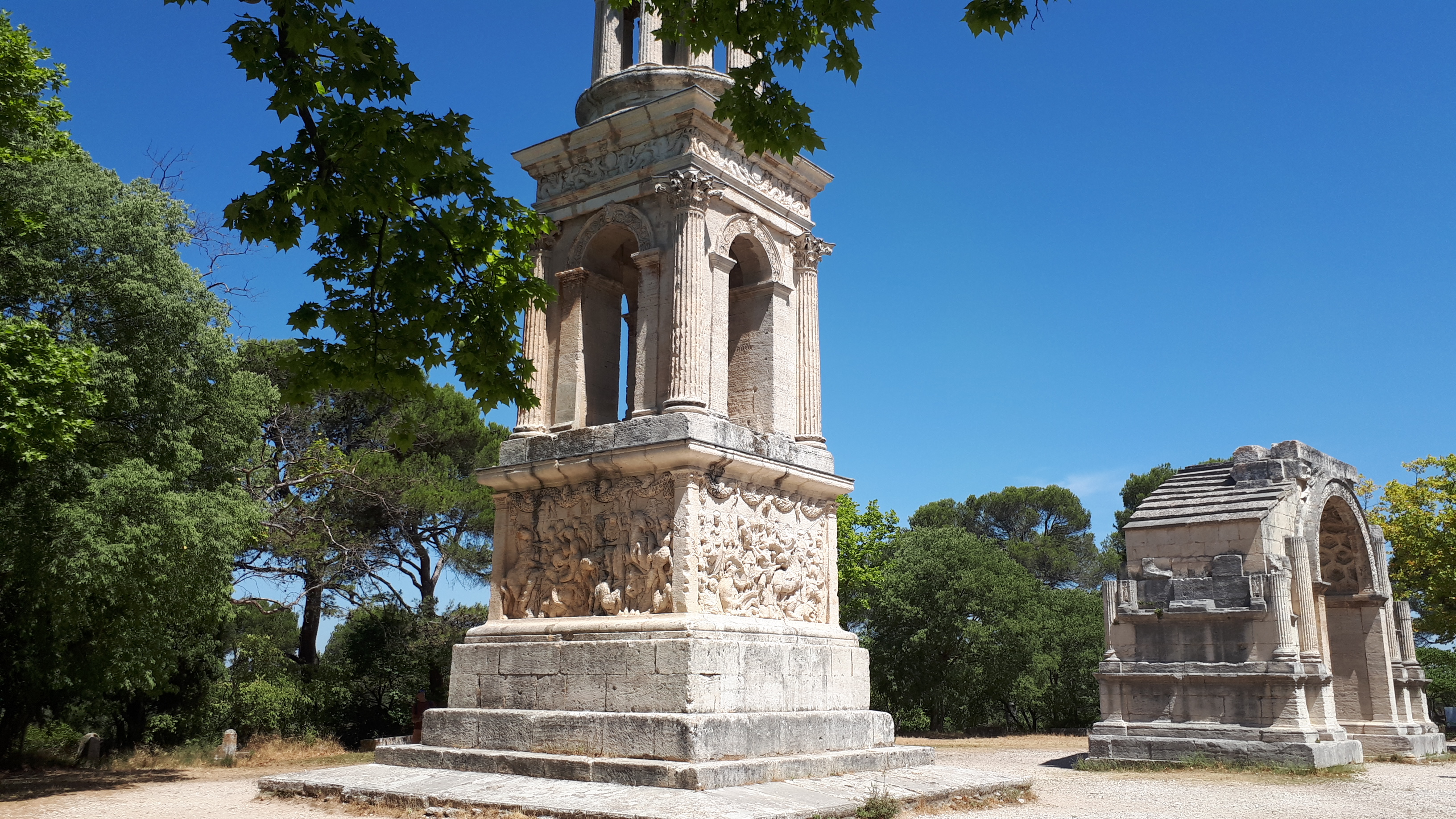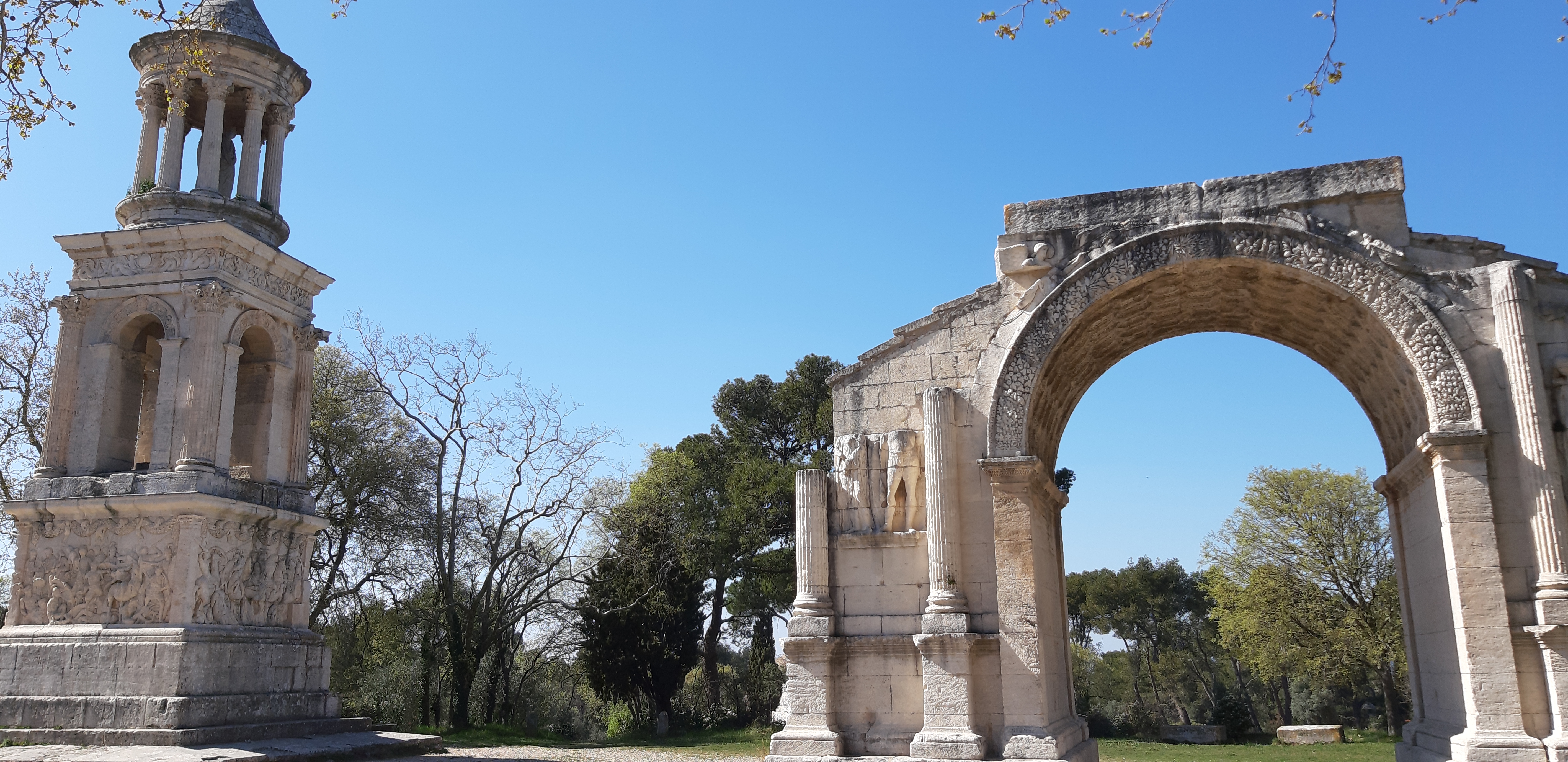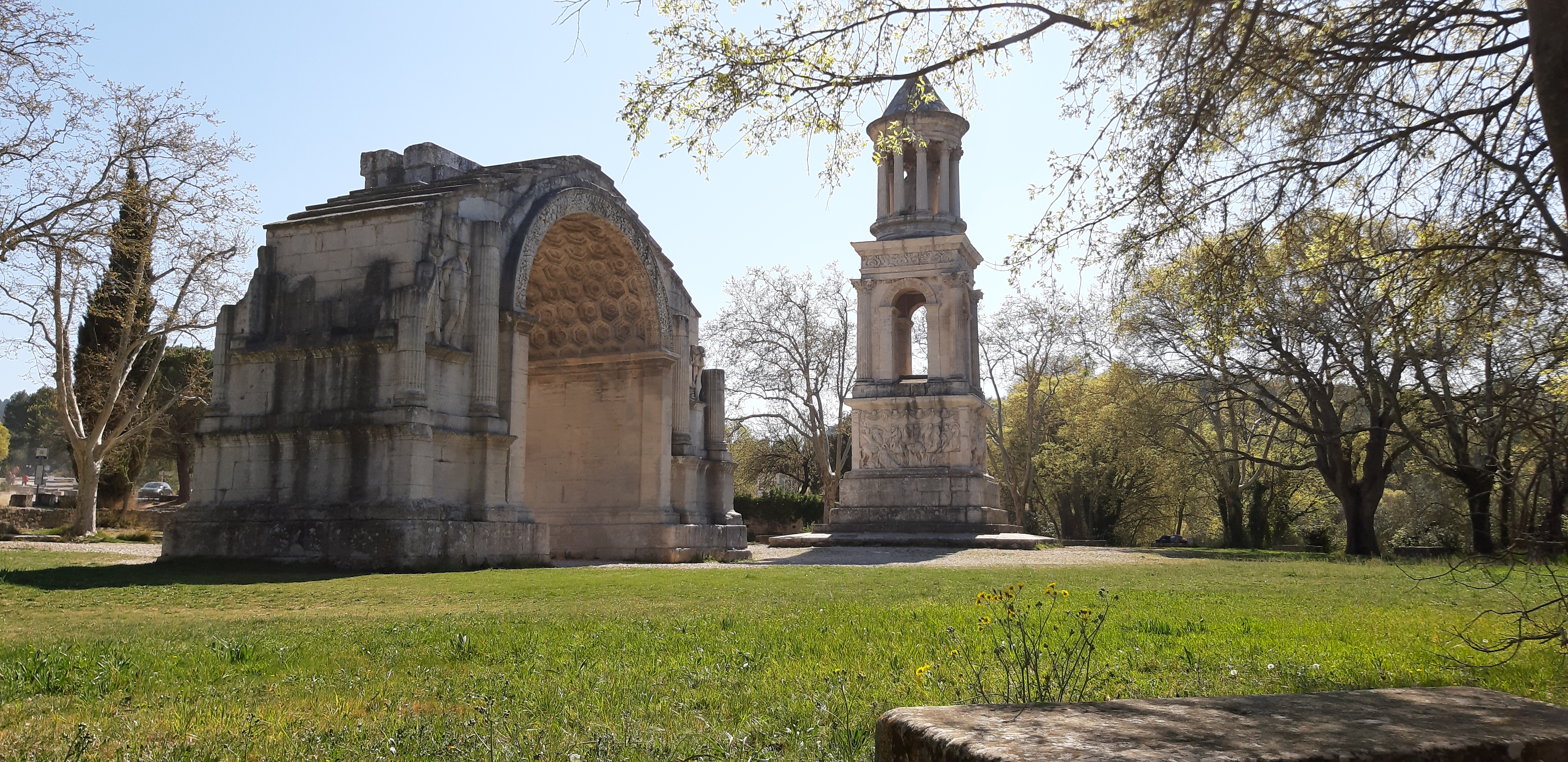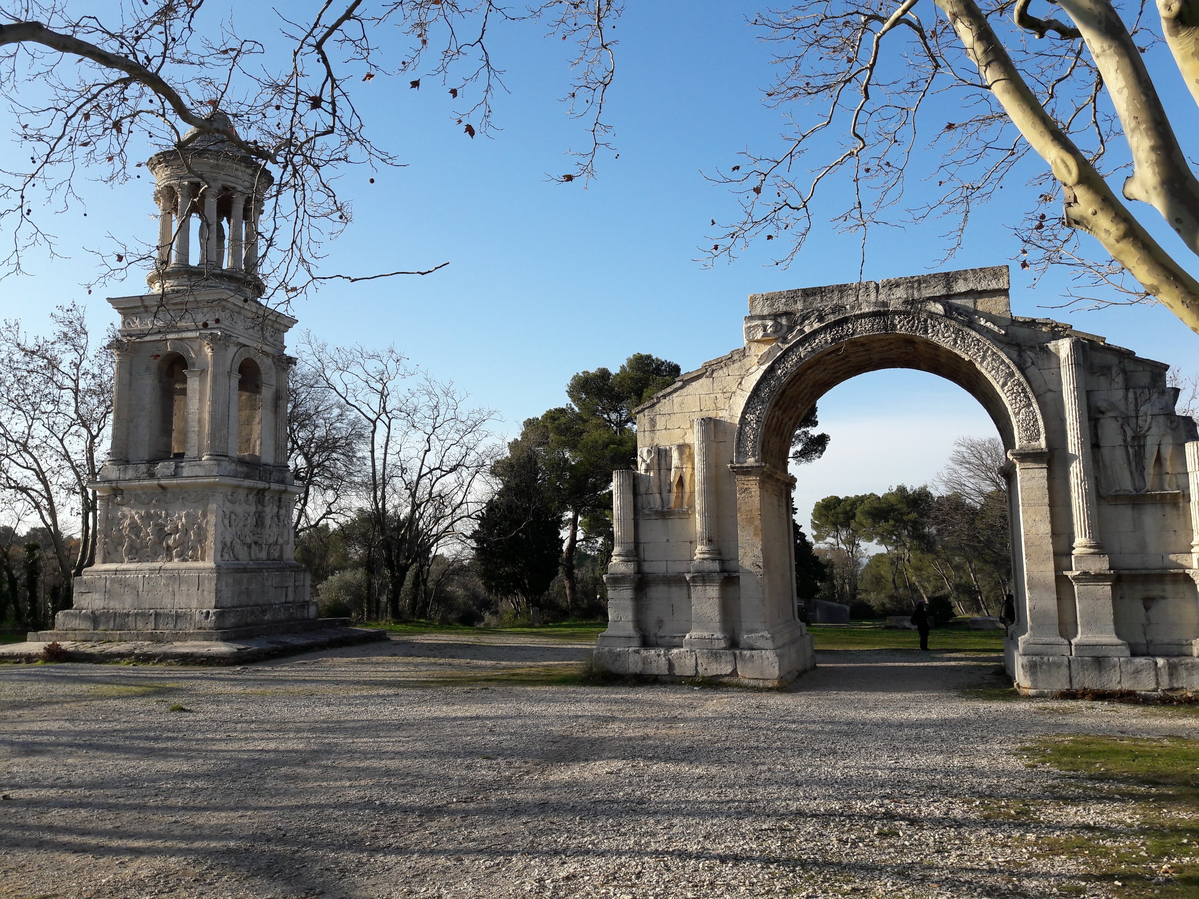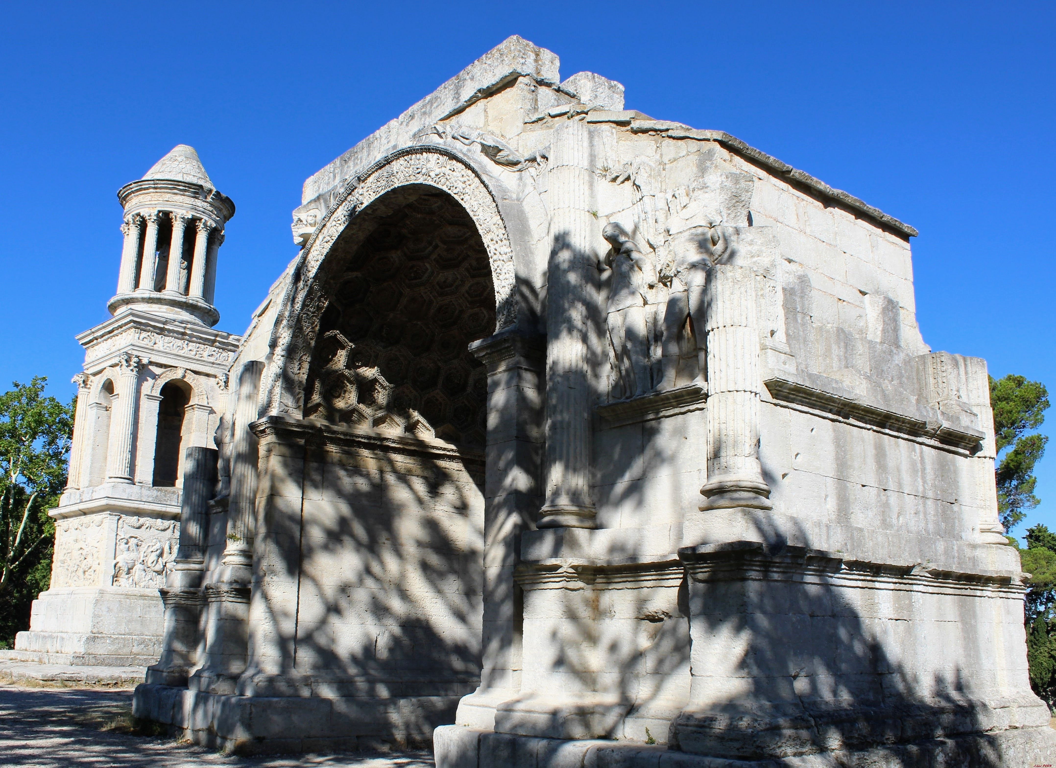 C'est un impressionnant ensemble monumental constitué d'un arc de triomphe, qui évoque la conquête de la Gaulle par Rome, et d'un mausolée rendant hommage à une famille gauloise ayant gagné la citoyenneté romaine.