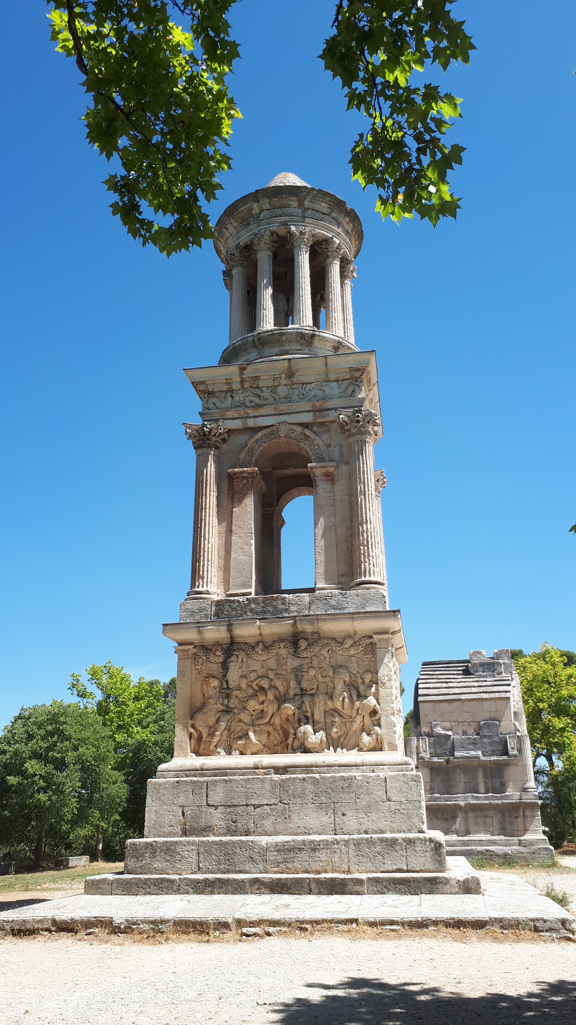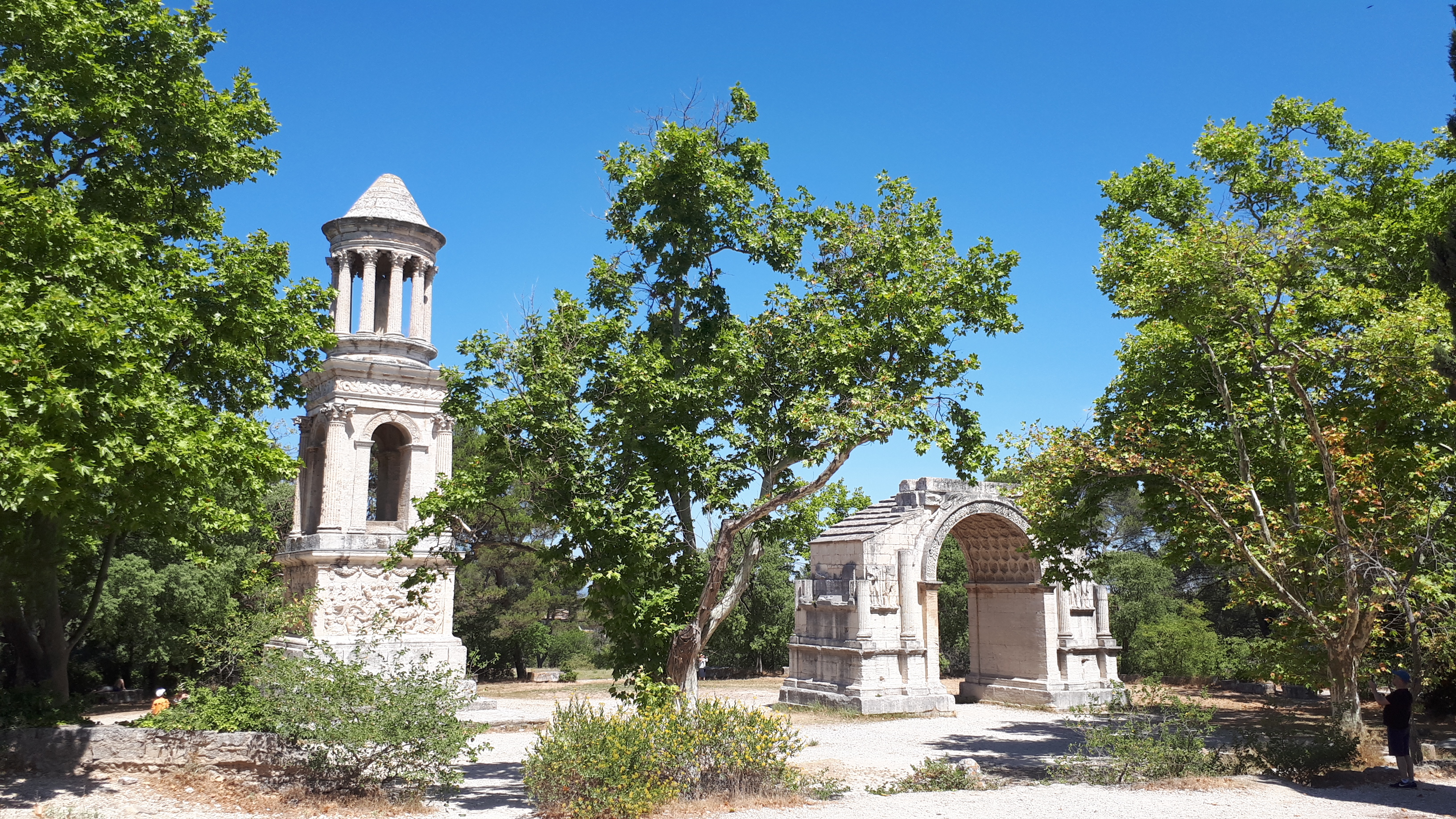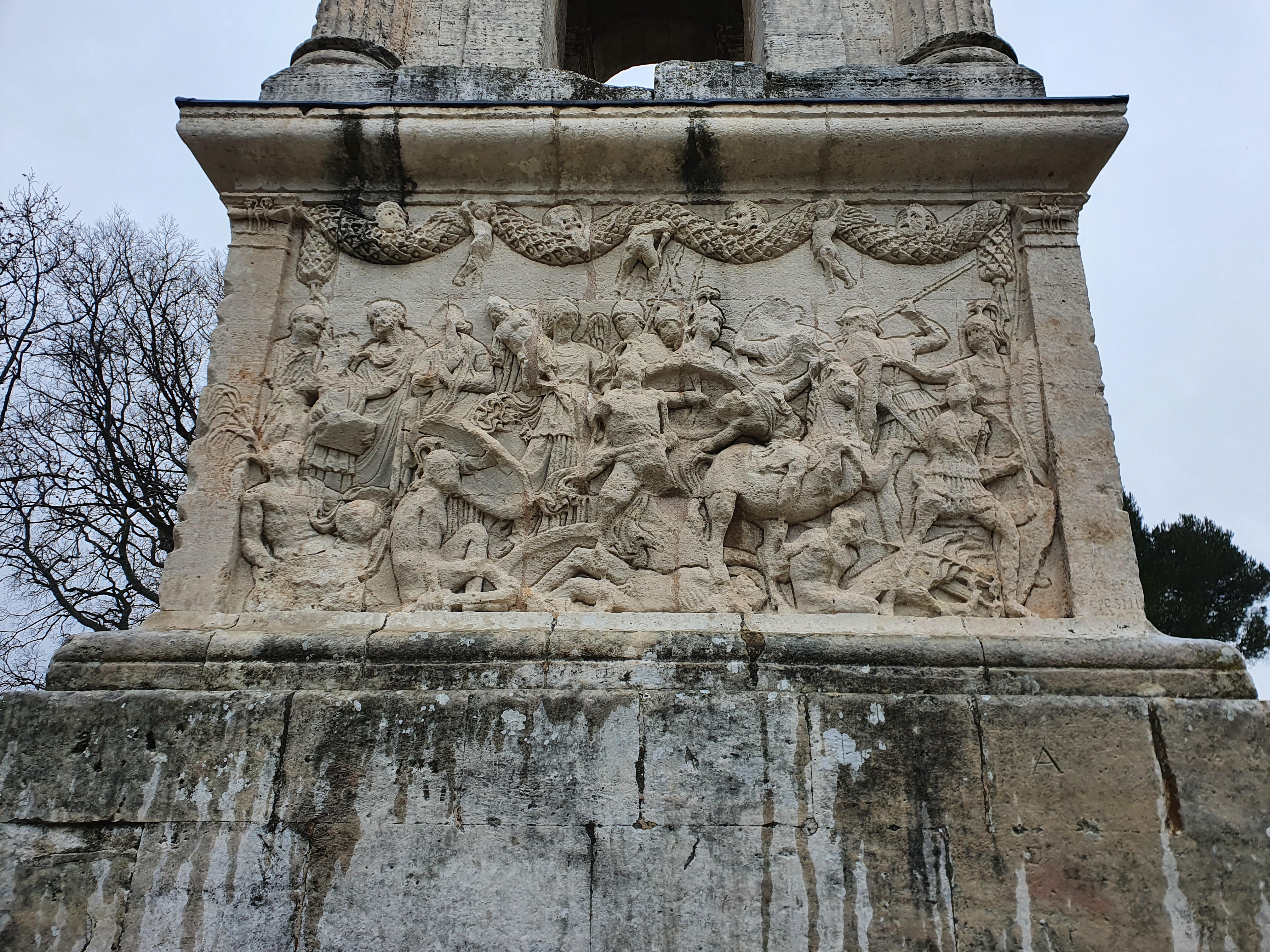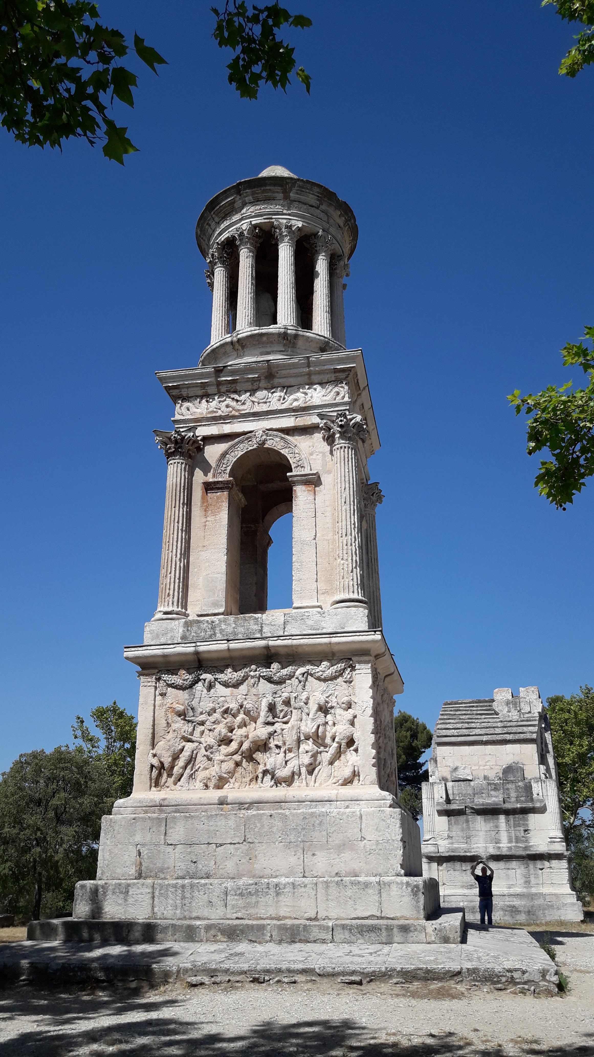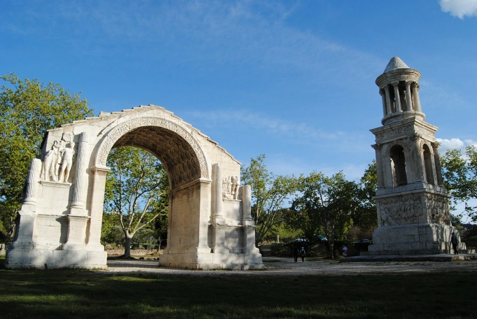 C'est un impressionnant ensemble monumental constitué d'un arc de triomphe, qui évoque la conquête de la Gaulle par Rome, et d'un mausolée rendant hommage à une famille gauloise ayant gagné la citoyenneté romaine.