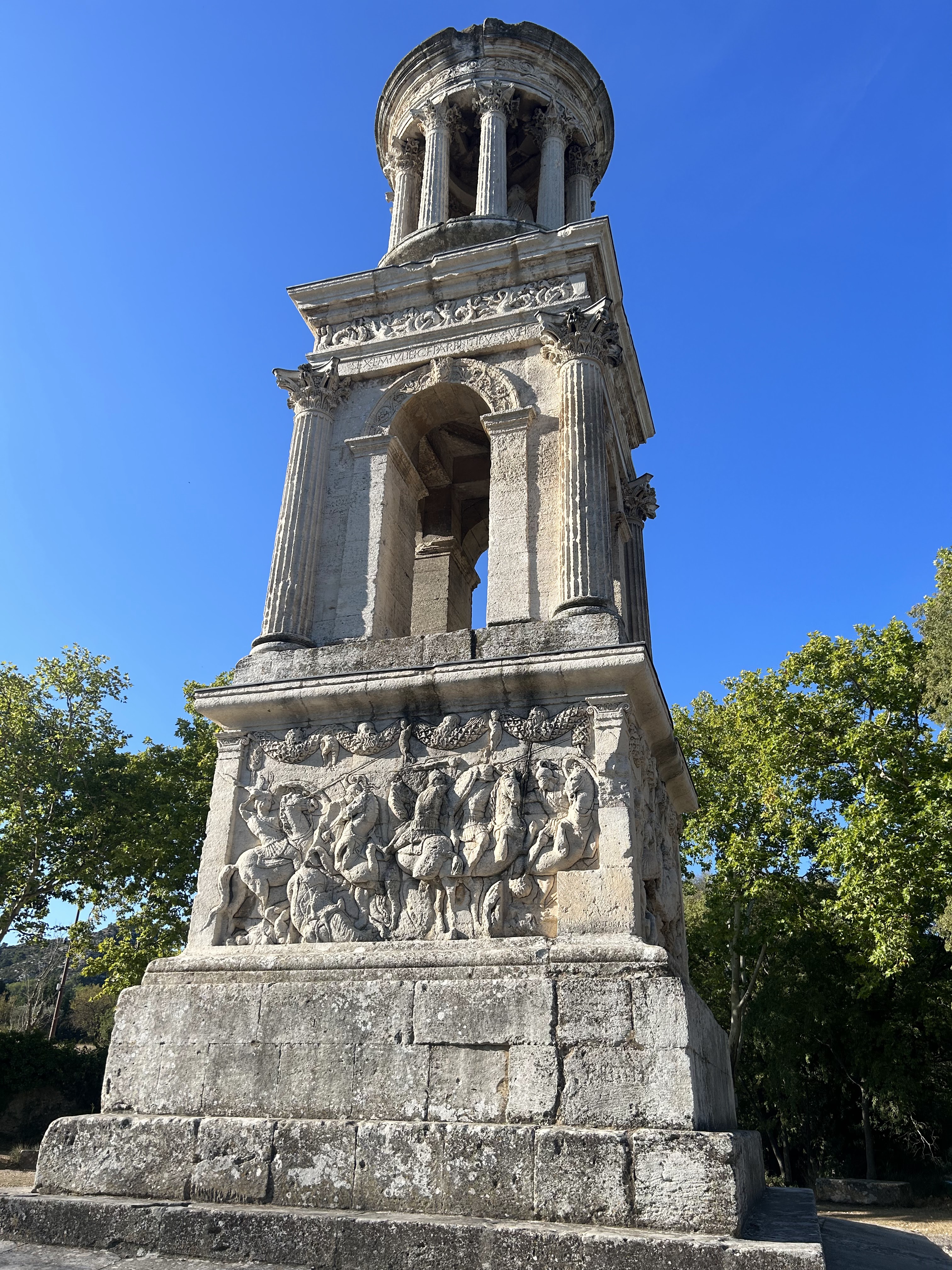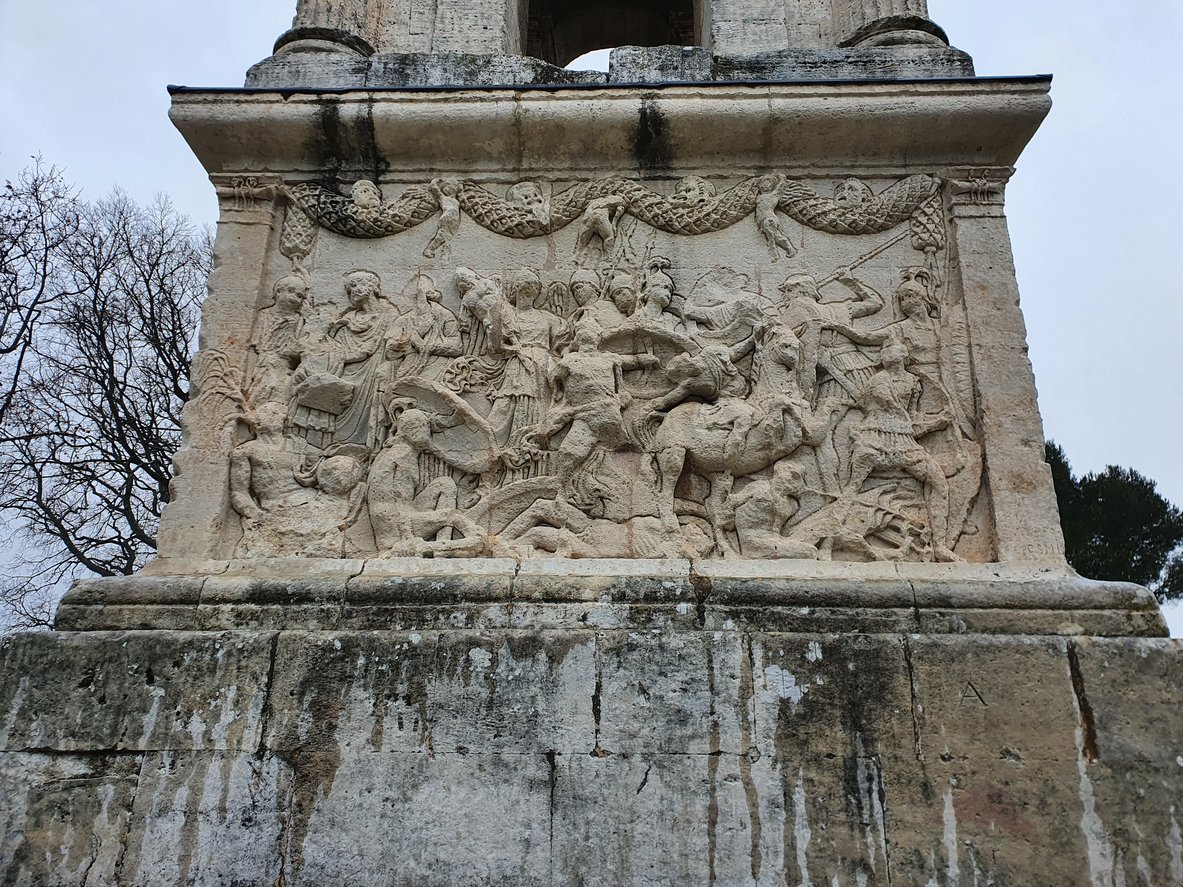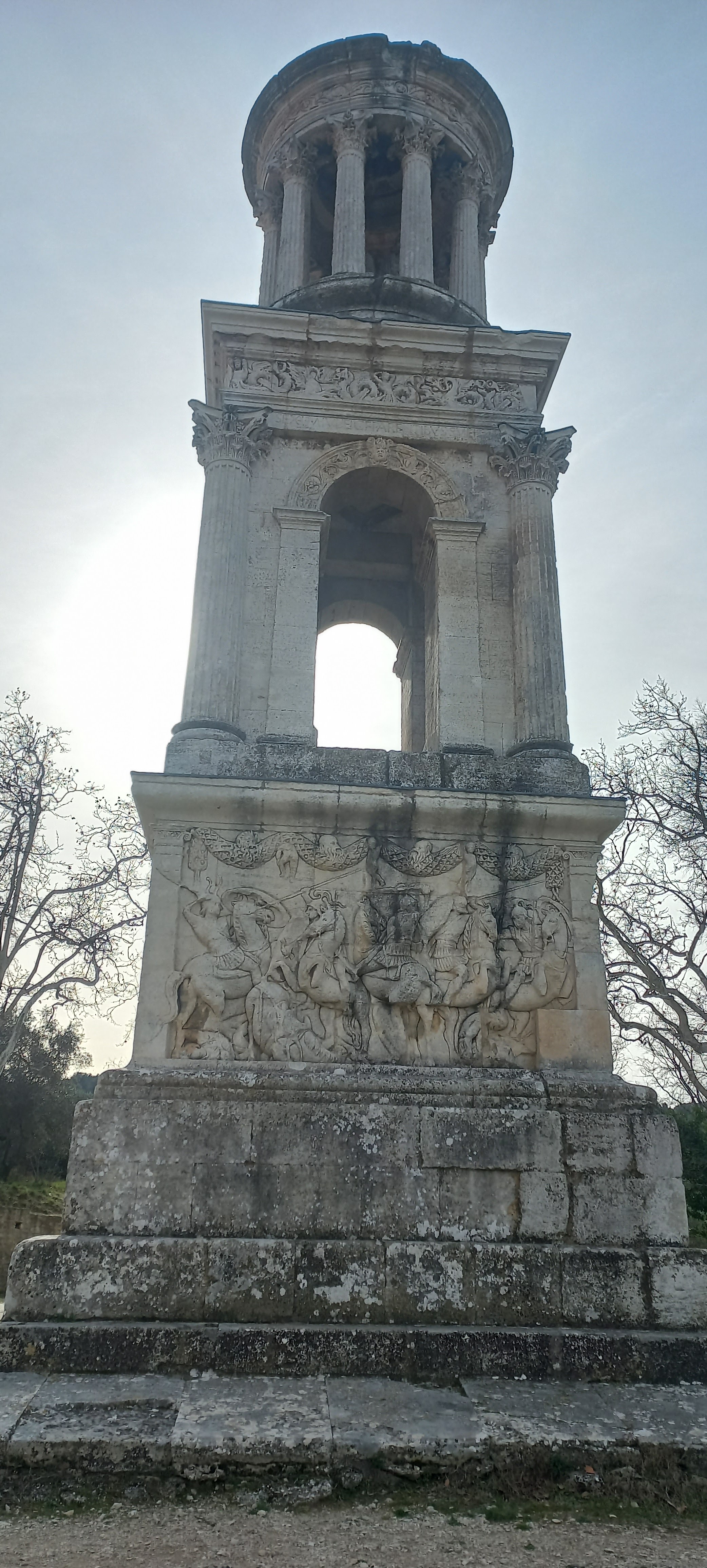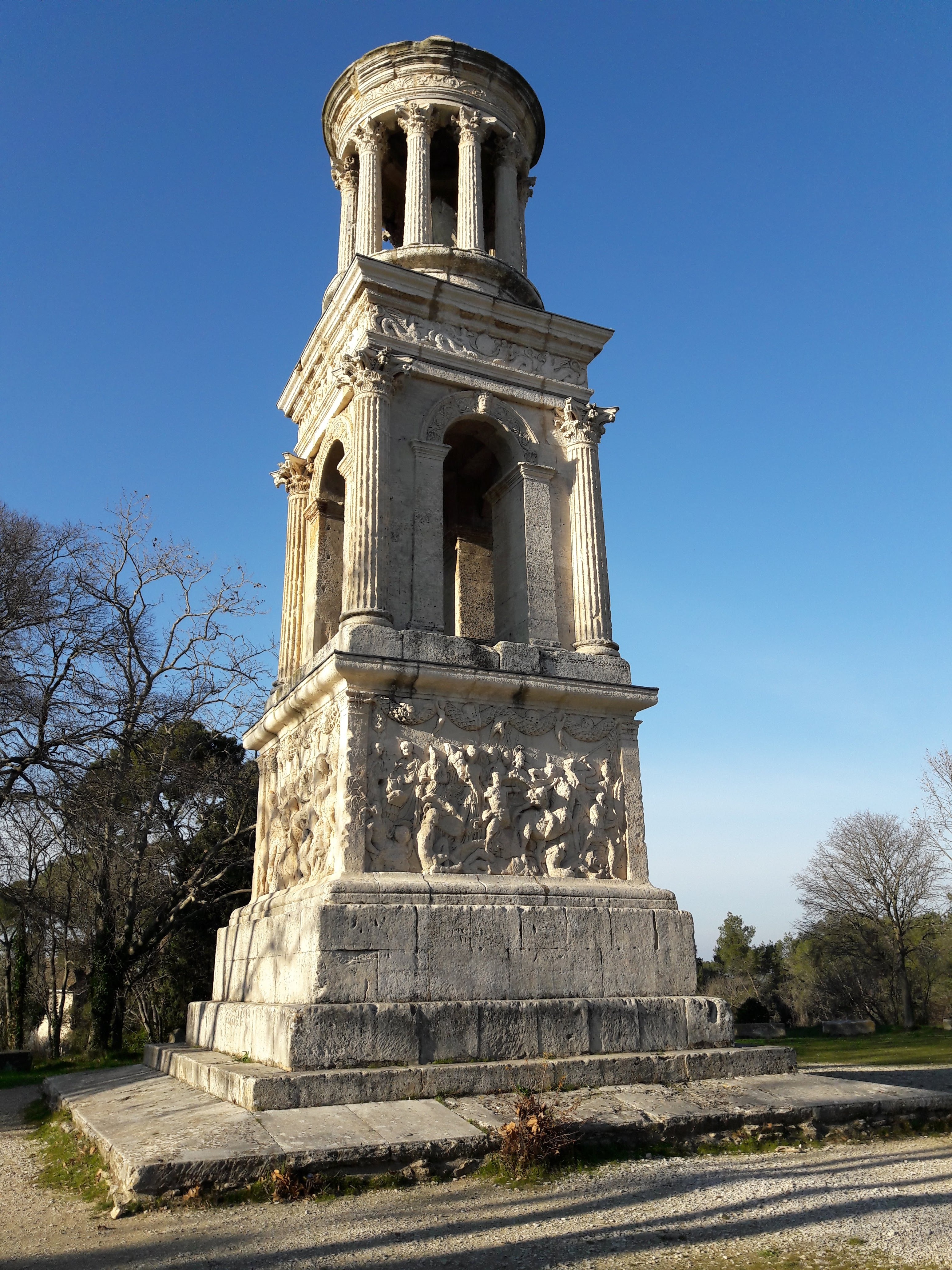 C'est un impressionnant ensemble monumental constitué d'un arc de triomphe, qui évoque la conquête de la Gaulle par Rome, et d'un mausolée rendant hommage à une famille gauloise ayant gagné la citoyenneté romaine.