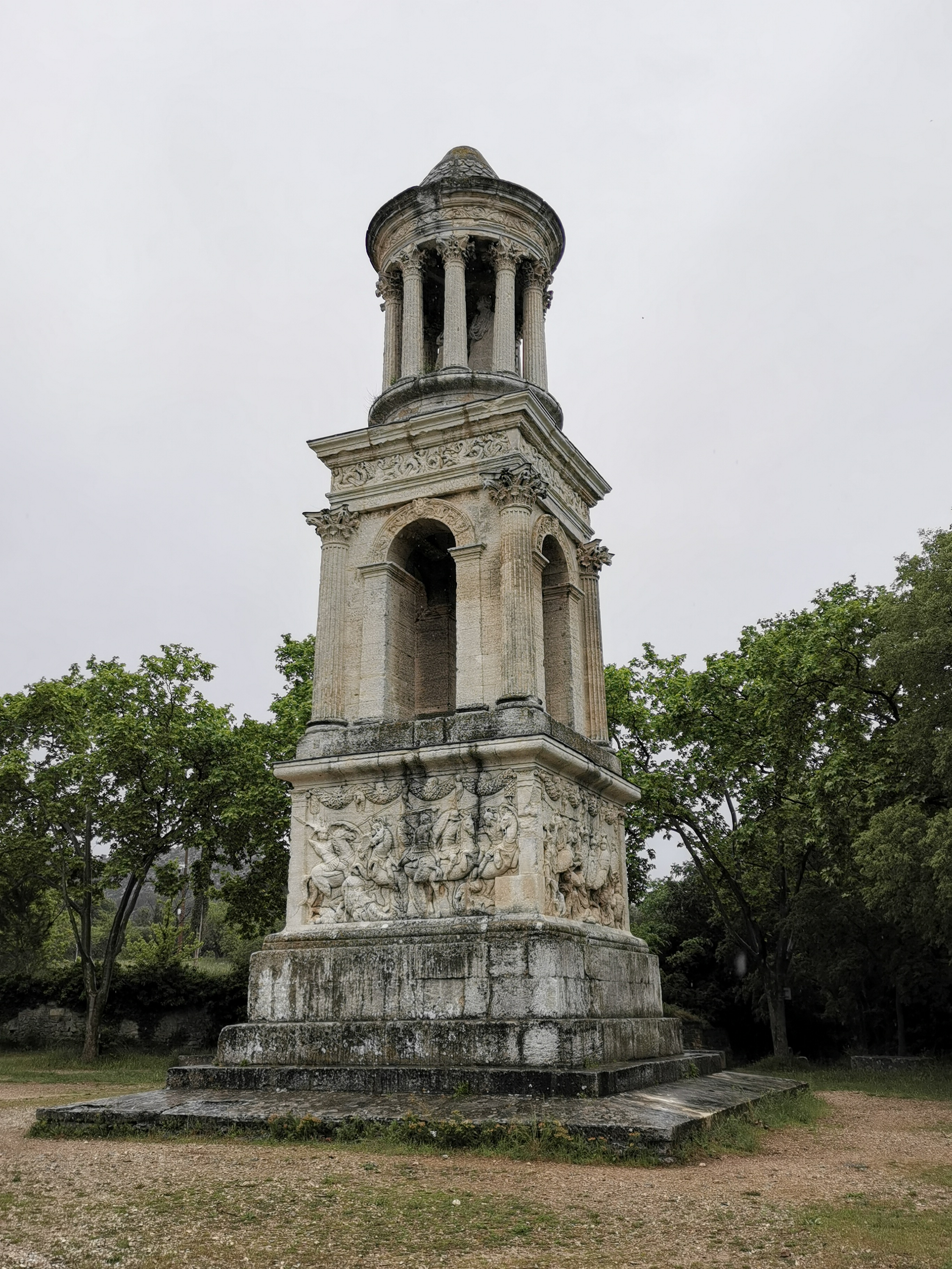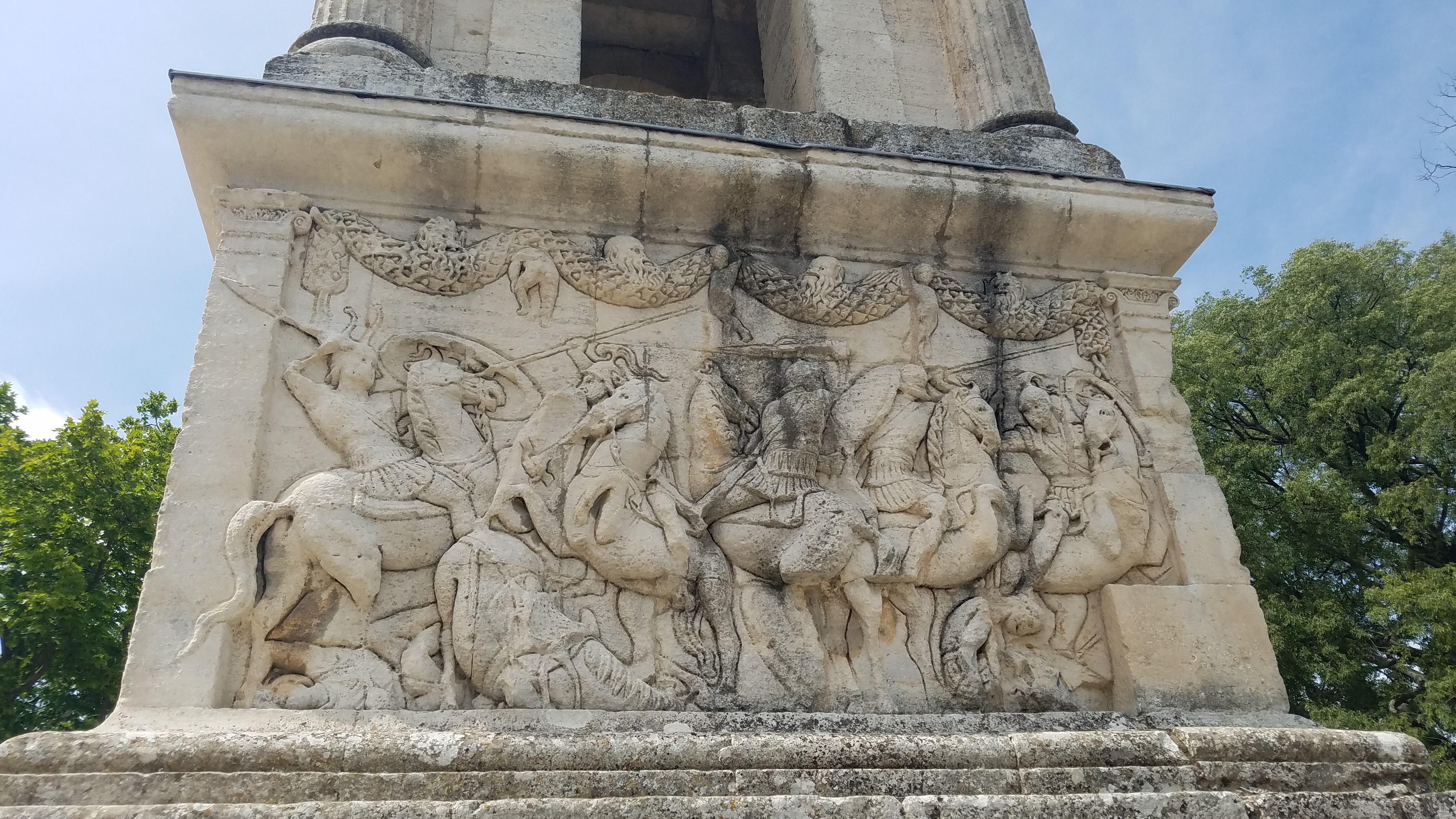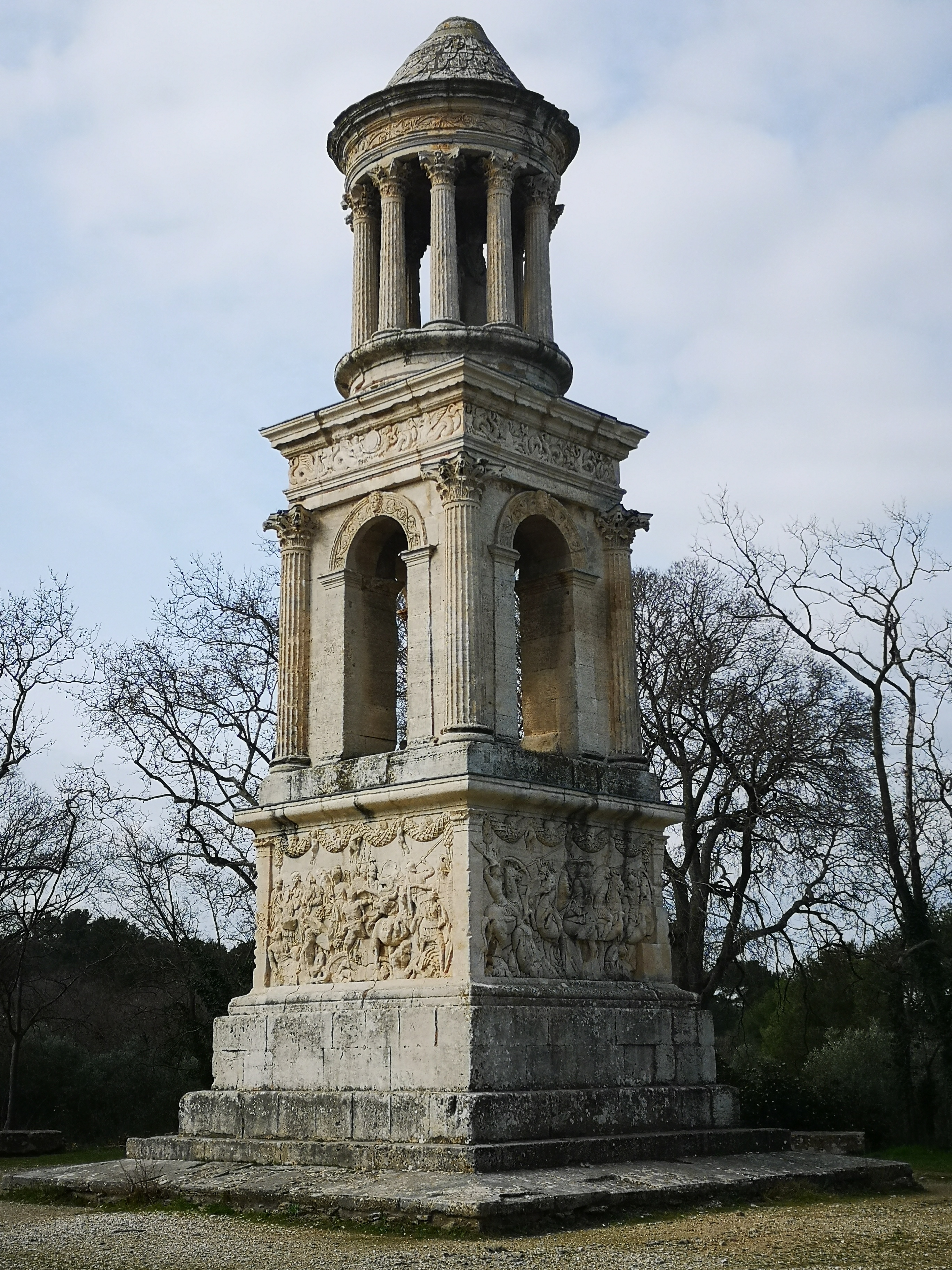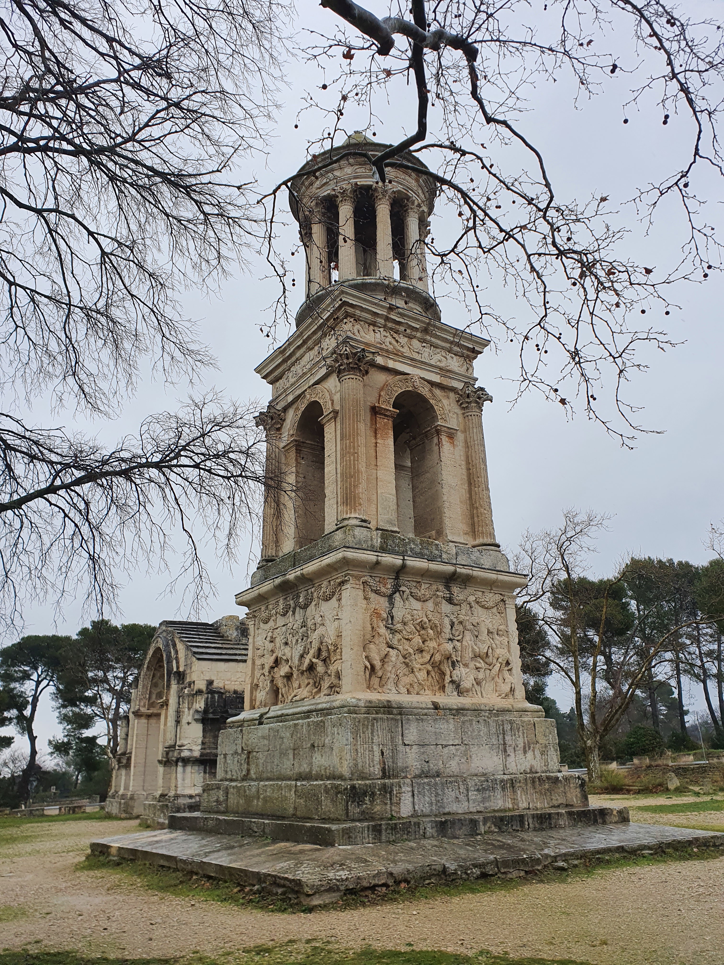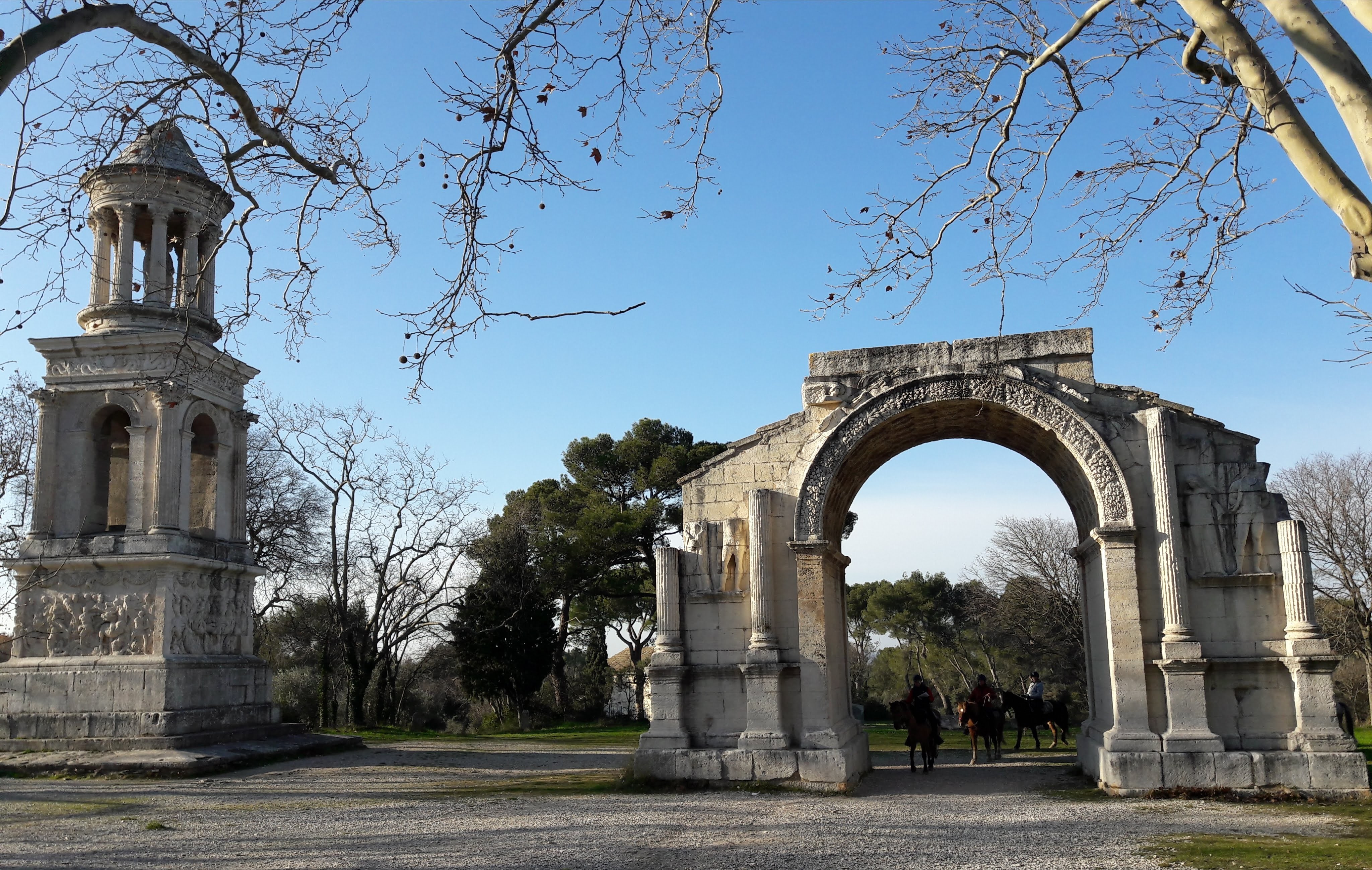 C'est un impressionnant ensemble monumental constitué d'un arc de triomphe, qui évoque la conquête de la Gaulle par Rome, et d'un mausolée rendant hommage à une famille gauloise ayant gagné la citoyenneté romaine.
