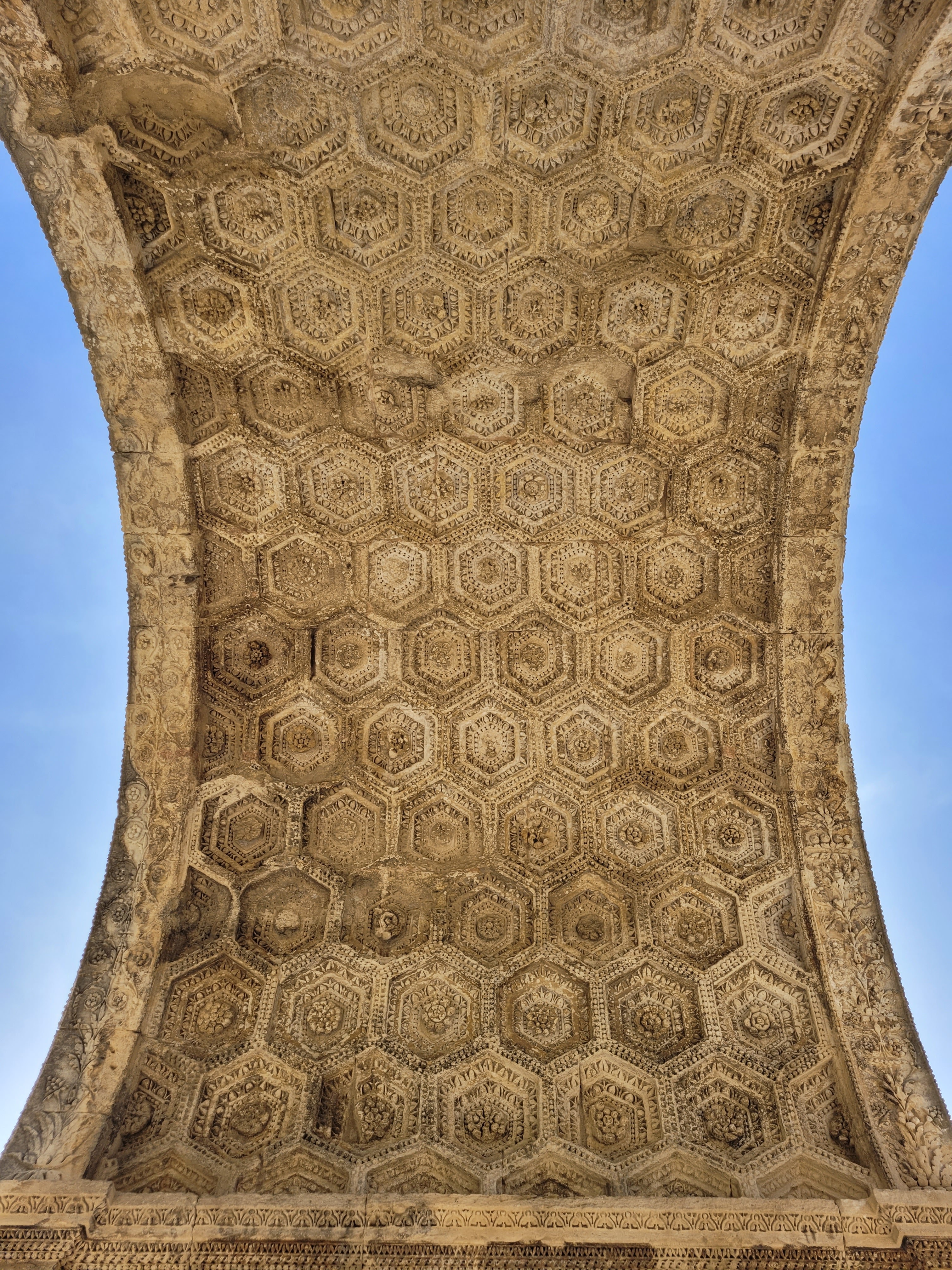 Majestueux monuments antiques : arc de triomphe et mausolée.