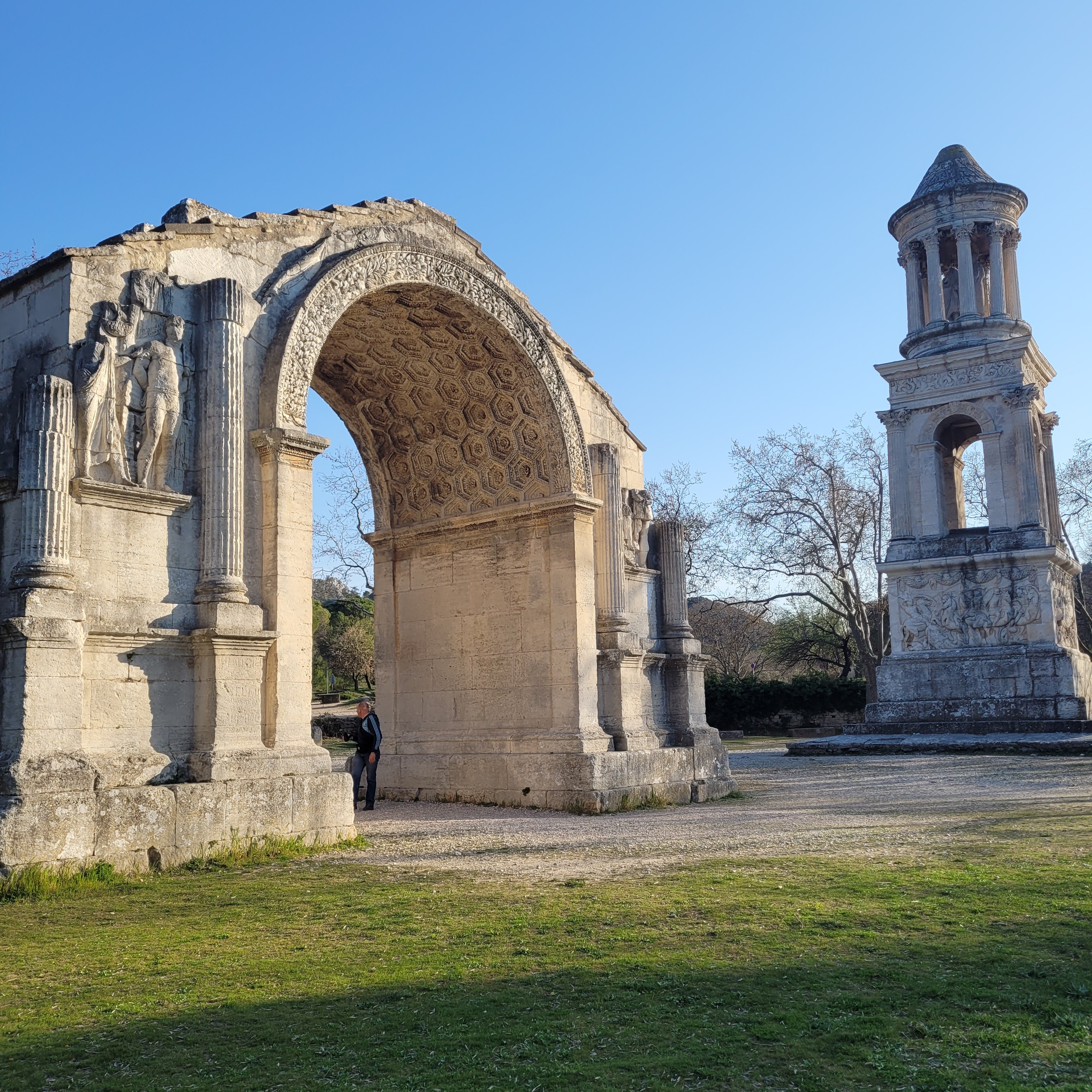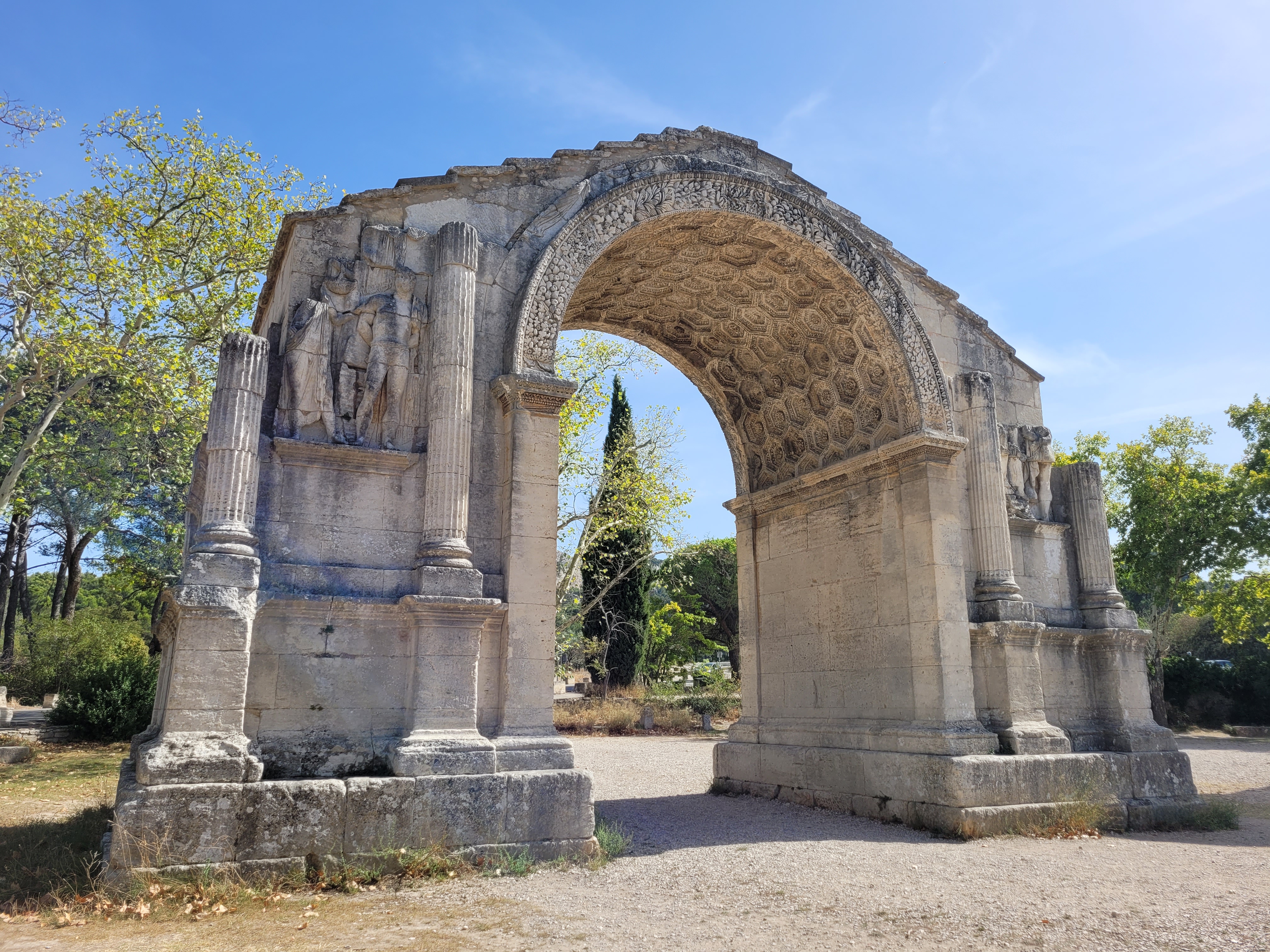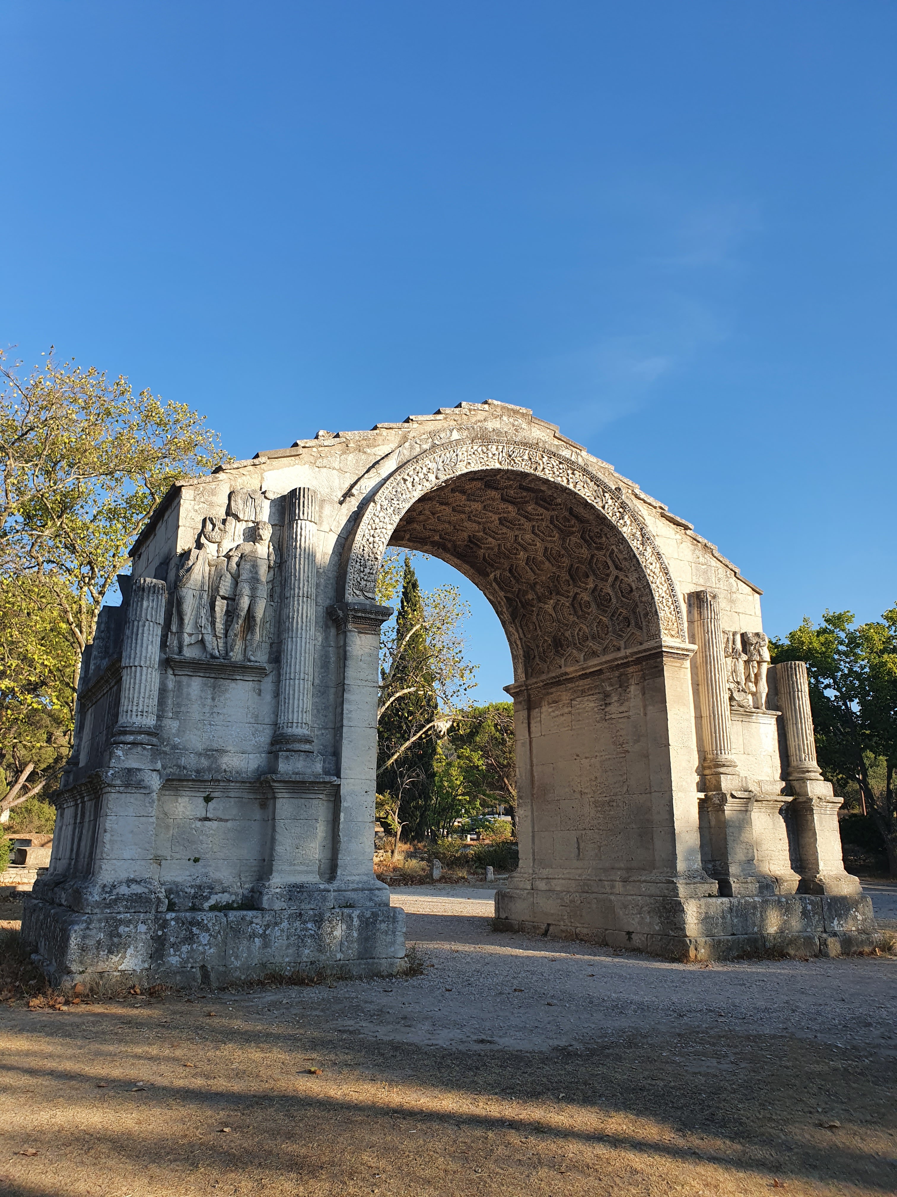 Colonne et arche qui nous plongent dans la Rome antique à ne pas manquer si vous passez à Saint Rémy de Provence. Et je vous invite à découvrir le site archéologique que vous trouverez en face.