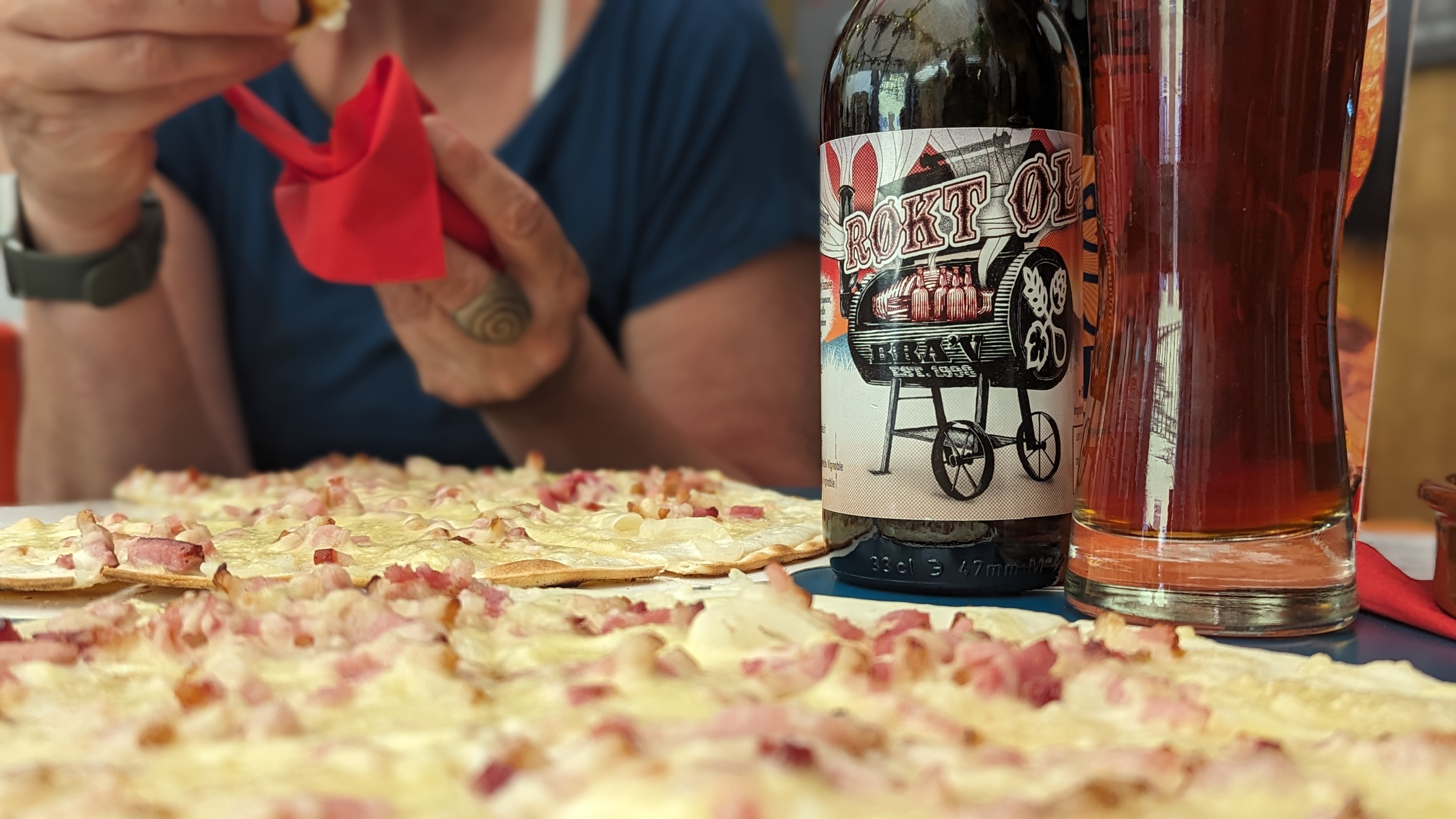 A coté du magasin, mangez une tarte flambé dans leurs 'cour du gourmet' dans un environ qui fait penser à un mix entre un festival de chanson français et un bar salsa au bord de la plage. Enfin,... vous imaginez. Simple, super sympa et rapide.