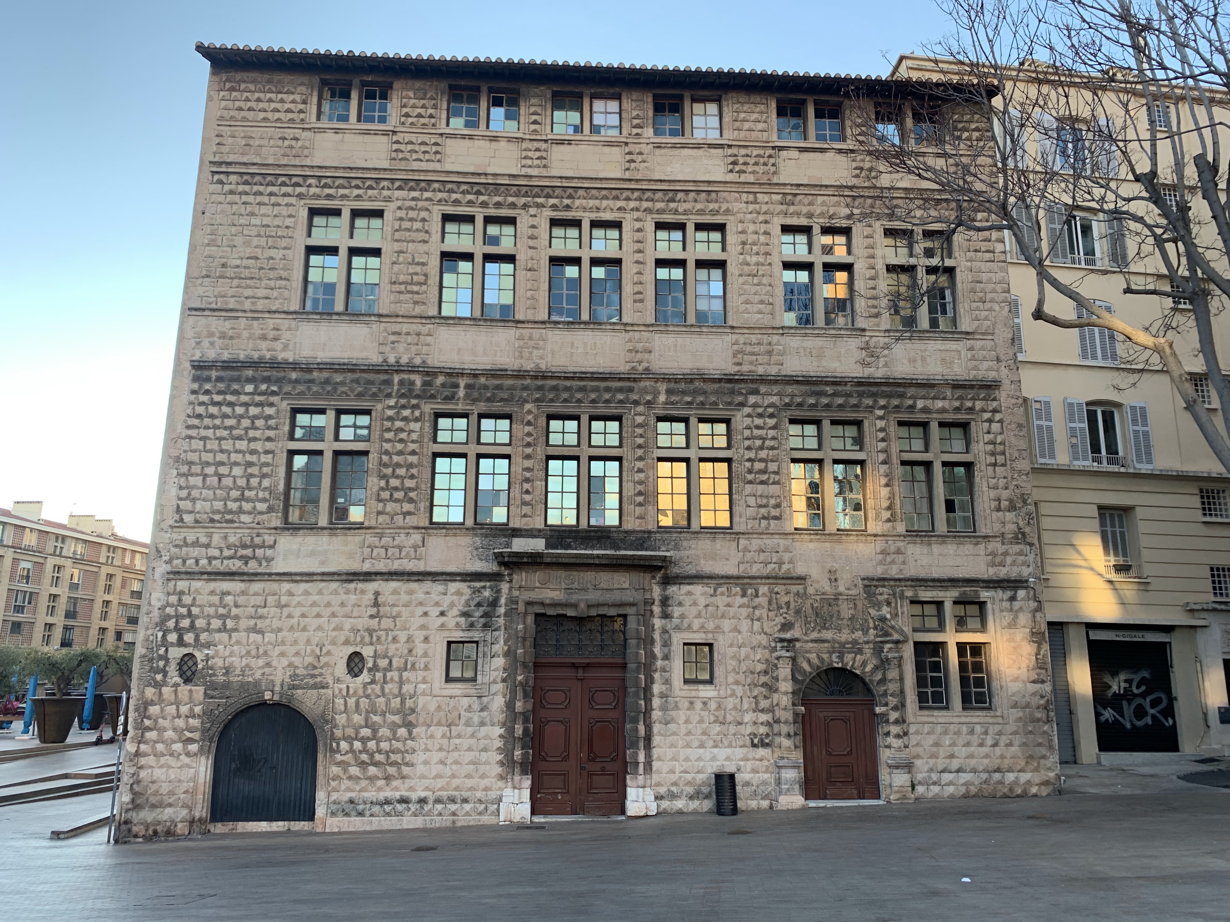 La seconde plus vieille maison de Marseille après l'hôte de Calabre. Magnifique façade en pierre taillée qui donne avec le reflet de la lumière une espece de d'effet diamantée. Escaliers intérieurs magnifiques
