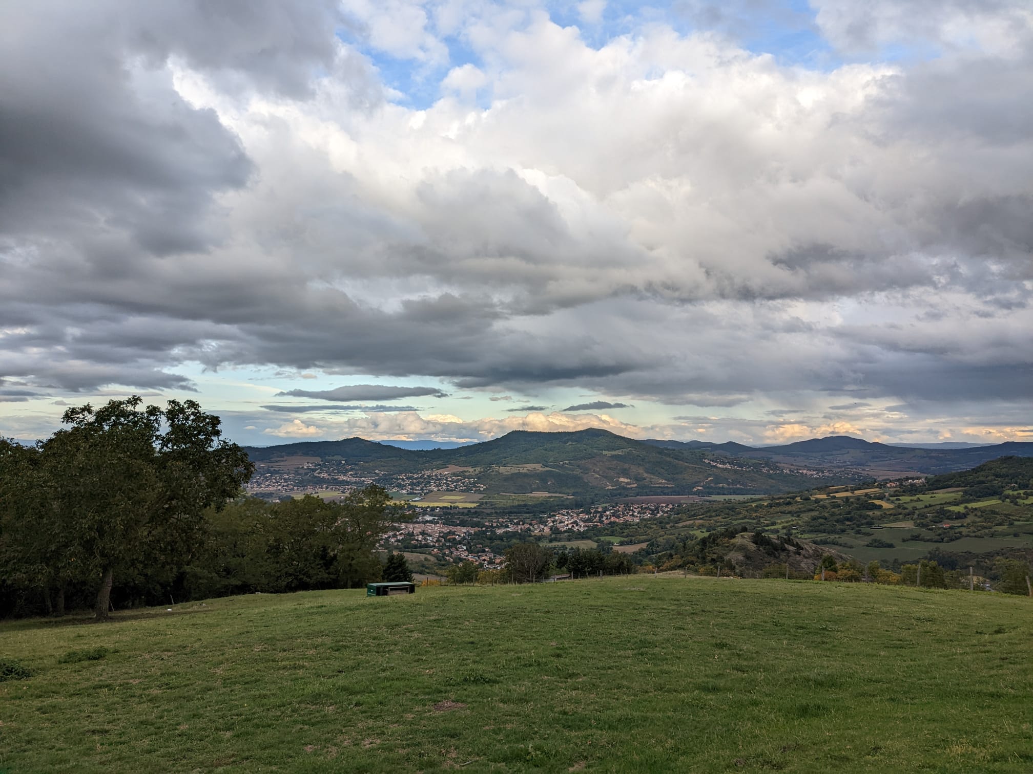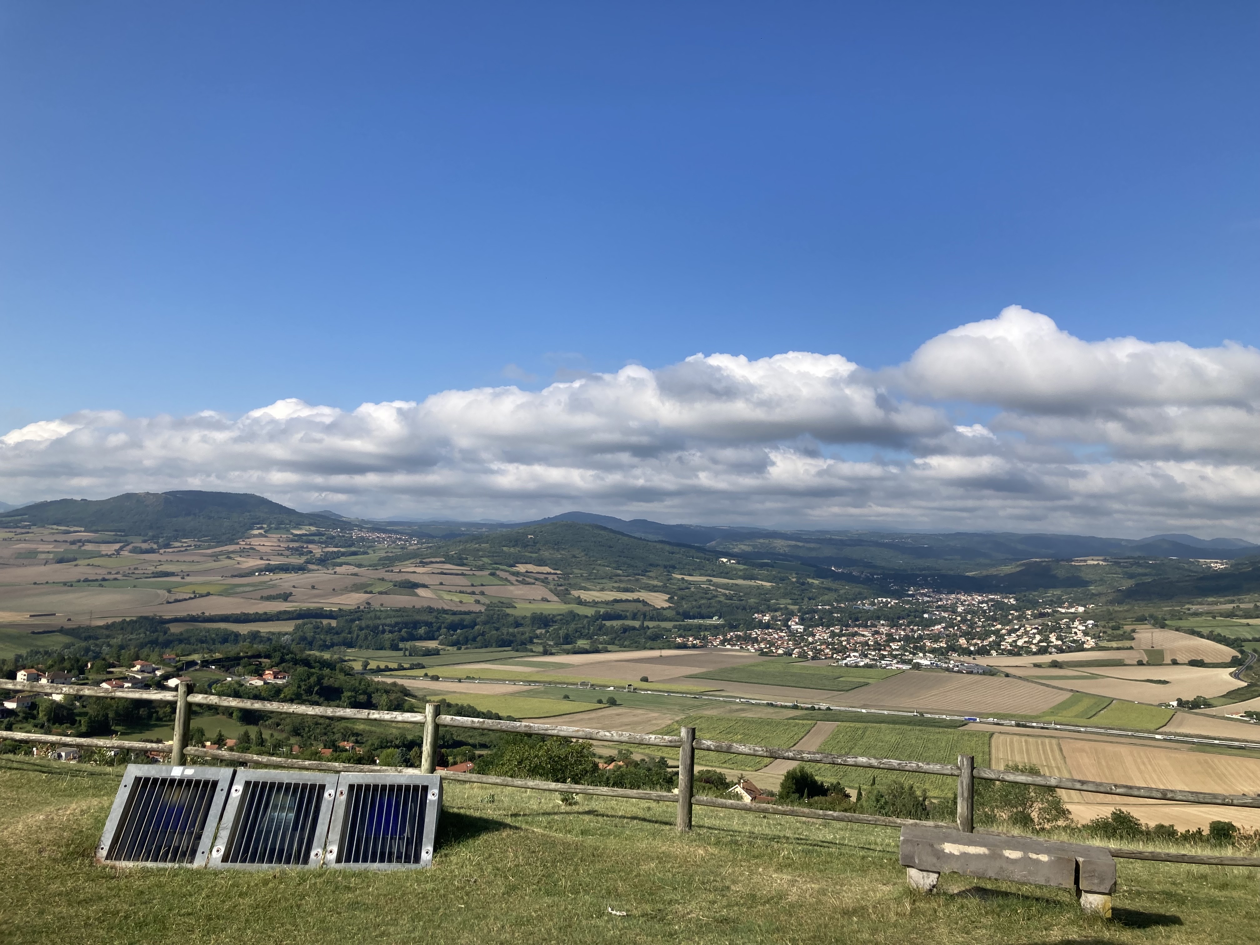 Vue magnifique sur les volcans d'Auvergne. Il manque juste 2 ou 3 tables de pique-nique et un peu d'ombre.