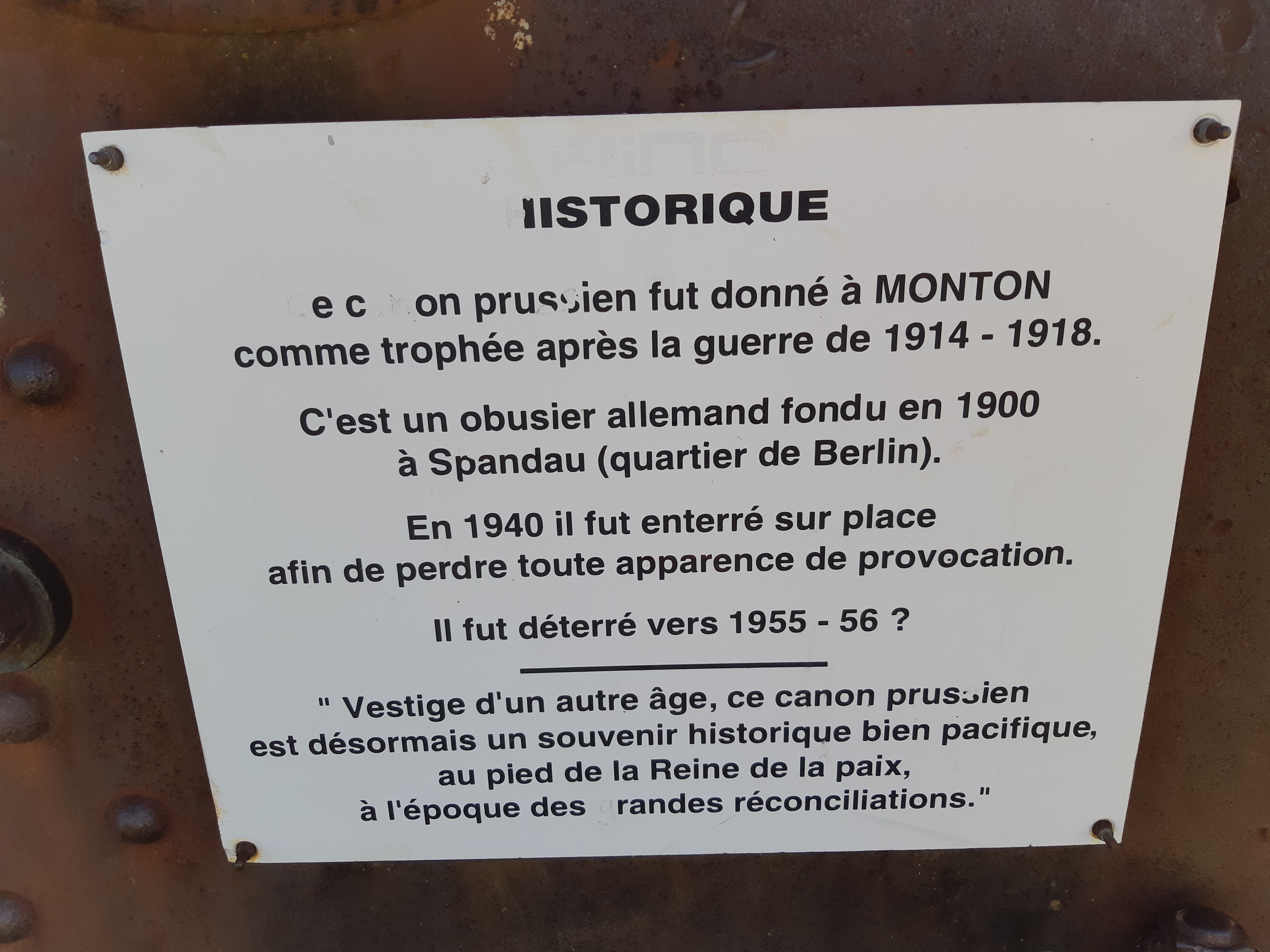 Majestueux... Une statue de la Vierge de 21 mètres de haut, un canon historique offert par les prusses à la commune de Monton, et un superbe panorama...