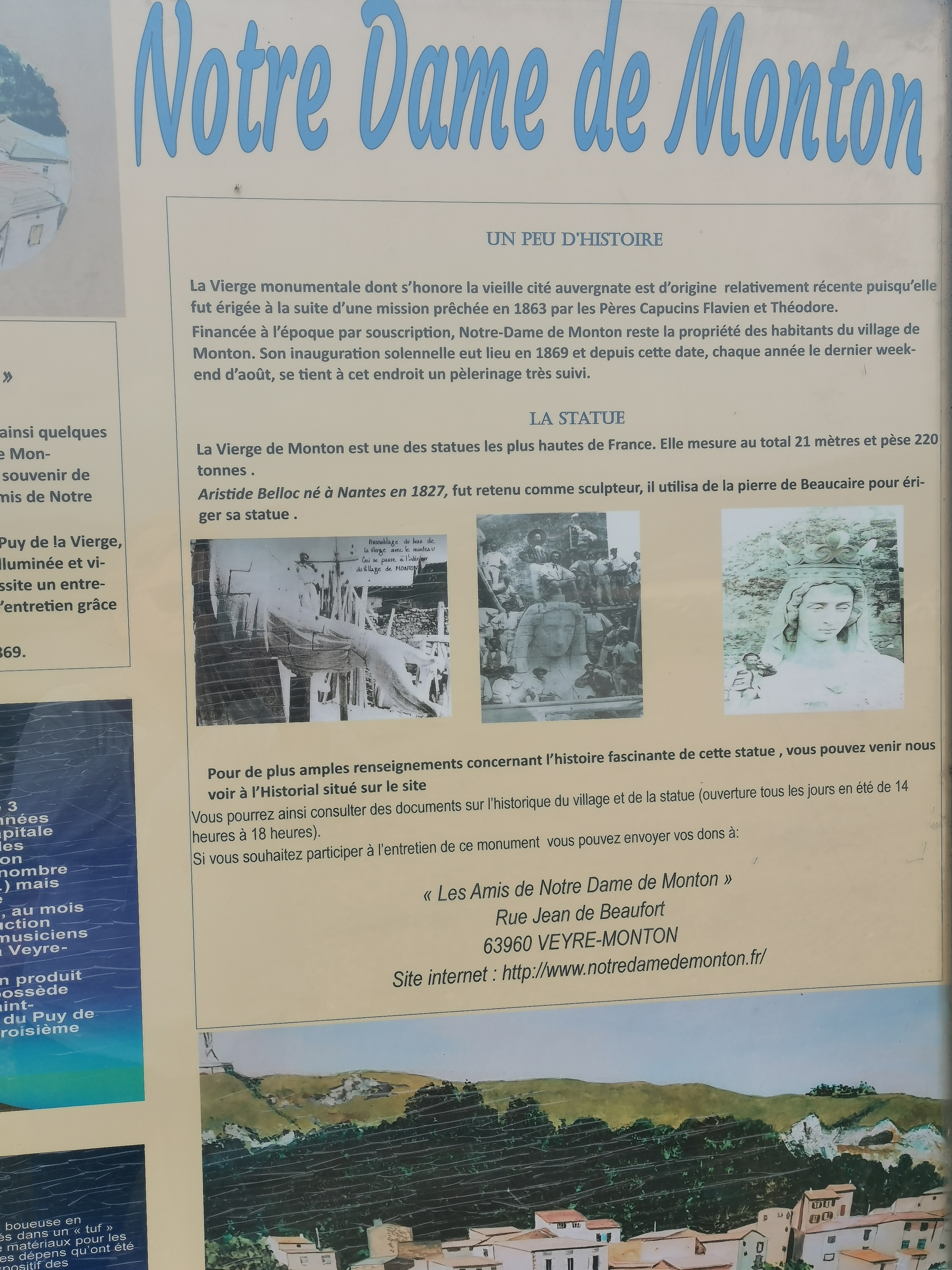 Le lieu est de monter à pied pour profiter de la vue qui est bien mérité.La Vierge de Monton est une des statues les plus hautes de France. Elle mesure au total 21 mètres et pèse 220 tonnes.