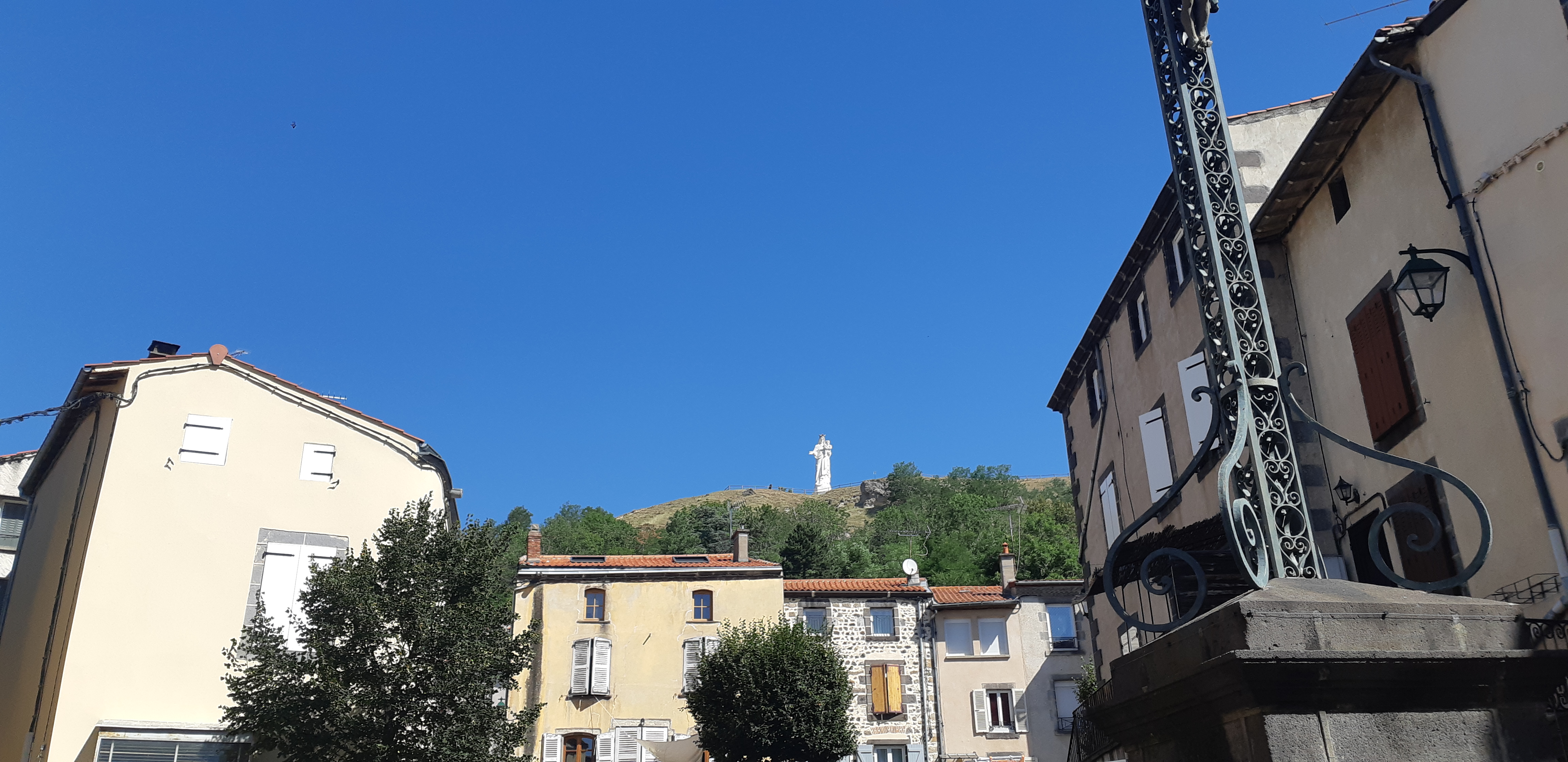 Très beau panorama. Et jolie monument qui surplombe A71/ A75 Et il y as un parking au pied de la vierge pour ce garé
